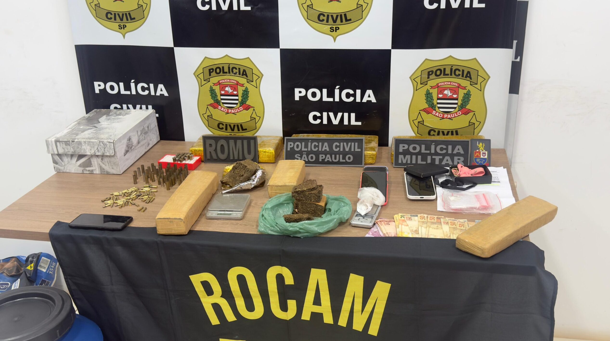 Suspeitos foram detidos com entorpecentes, munições, celulares e dinheiro; operação é conjunta entre Polícia Civil, Militar, Guarda Municipal, Romu e Rocam