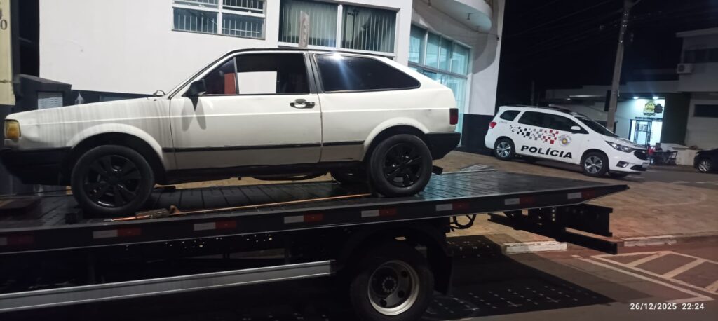 Na verificação do emplacamento, constatou-se que o veículo era oriundo de outro estado. Entretanto, como o condutor não portava o documento obrigatório, não foi possível confirmar a situação do licenciamento. O automóvel acabou sendo recolhido ao pátio devido ao mau estado de conservação e também porque o motorista estava com a Carteira Nacional de Habilitação vencida desde 31 de outubro de 2025. Autos de infração de trânsito foram lavrados.