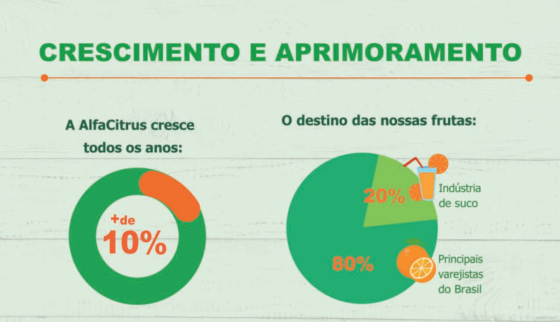 Com um crescimento anual de mais de 10%, 80% da produção de citros da Alfacitrus é destinada aos principais varejistas do país, enquanto os outros 20% vão para a indústria de sucos. Esse crescimento é fruto de um trabalho dedicado e familiar, que valoriza tanto a qualidade quanto a tradição.