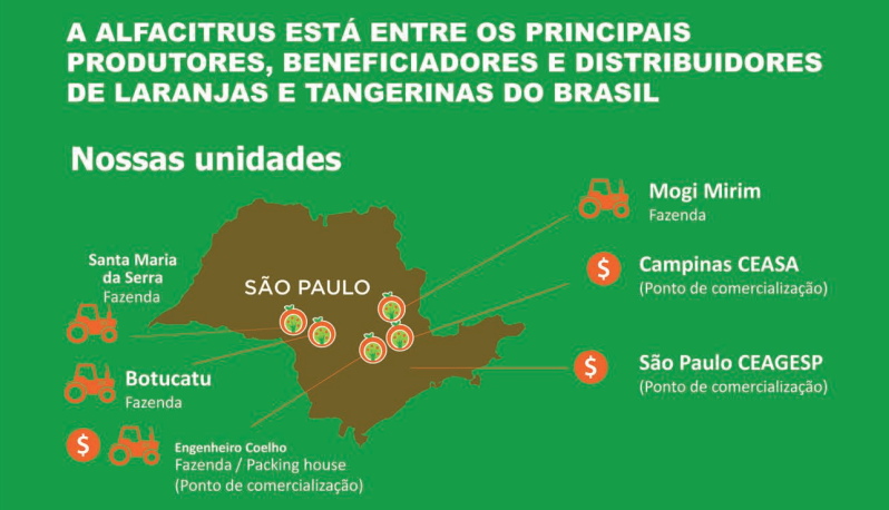 Com uma infraestrutura distribuída em 2.400 hectares sendo 450/há de novas áreas em formação, a AlfaCitrus é uma empresa familiar que conta com fazendas em Botucatu e Mogi Mirim, no interior de São Paulo, além do um packing house, em Engenheiro Coelho/SP, um dos mais modernos do País.
