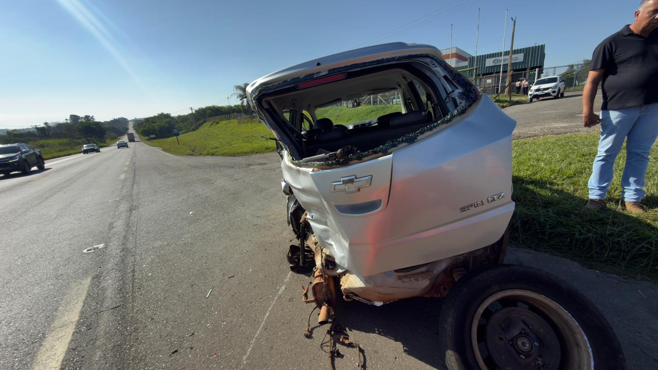 De acordo com informações apuradas no local, a condutora de um Chevrolet Spin tentou realizar uma conversão para acessar uma empresa às margens da rodovia, quando foi atingida por um caminhão que trafegava logo atrás.