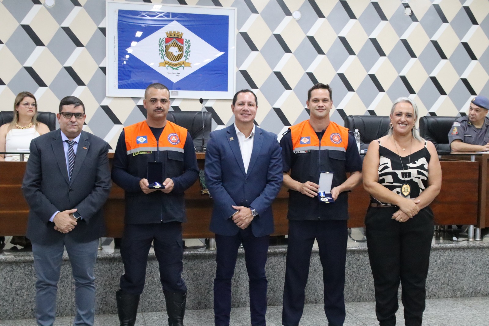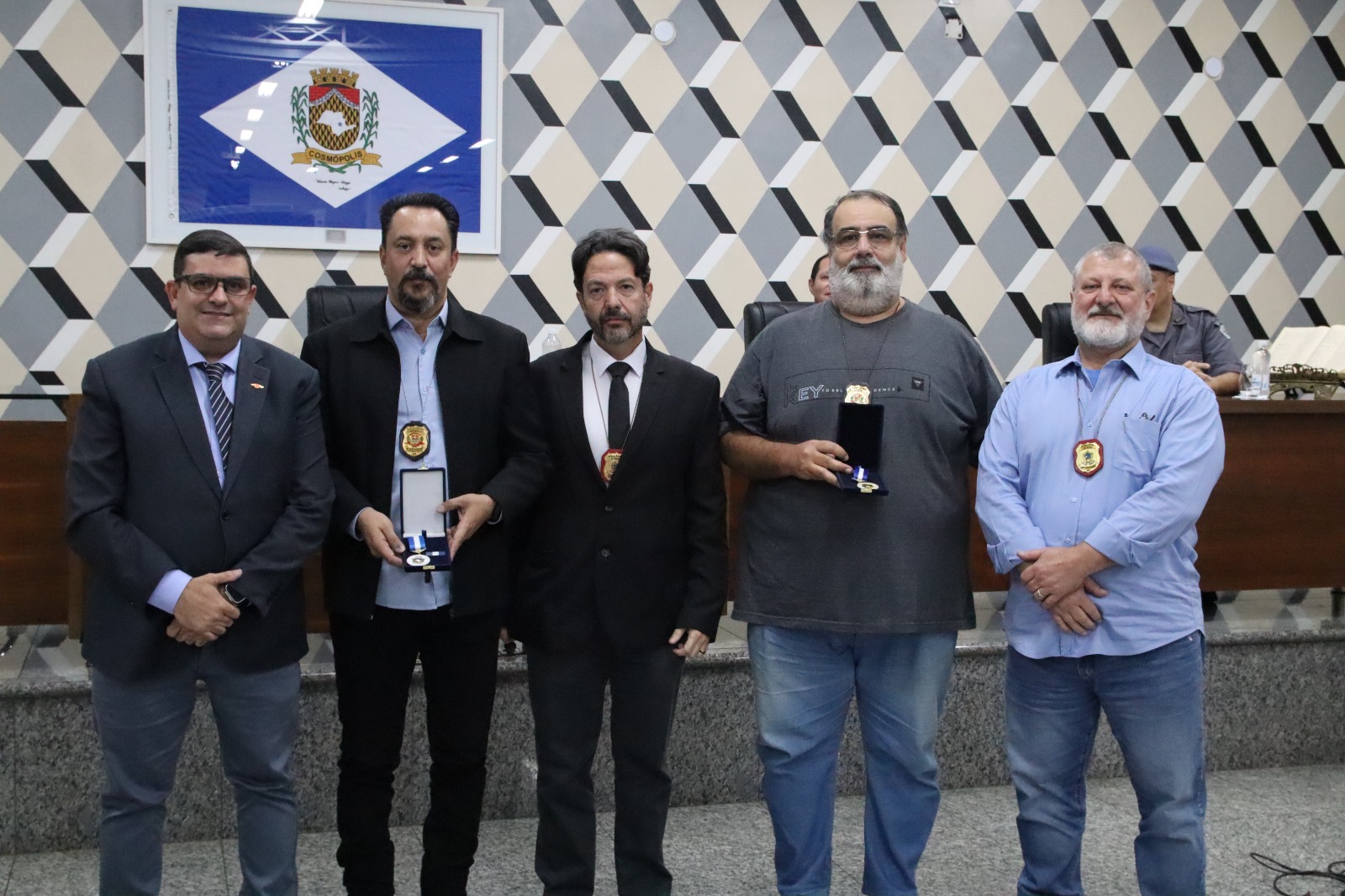 A sessão contou com a presença do prefeito Junior Felisbino, vereadores, autoridades civis e familiares dos homenageados. Além da entrega dos títulos, também foi entregue uma moção em reconhecimento ao programa Universal nas Forças Policiais (UFP), voltado ao apoio espiritual e social aos integrantes das forças de segurança e suas famílias.