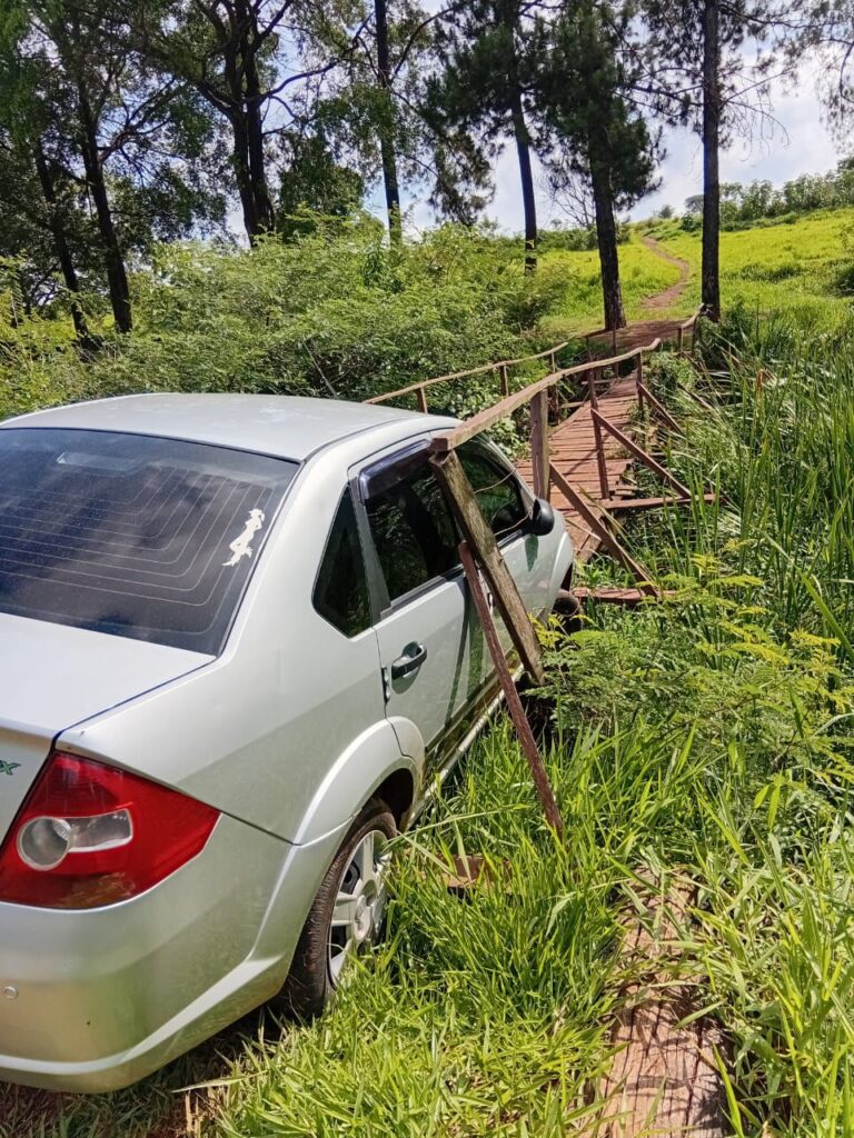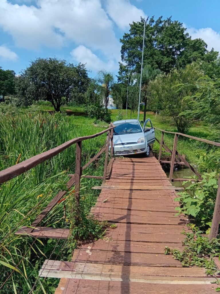 Um fato chamou a atenção dos moradores do entorno da Lagoa da Cosmo, em Cosmópolis, na manhã deste domingo. O condutor de um Ford Fiesta prata tentou atravessar uma ponte destinada exclusivamente a pedestres e acabou ficando completamente enroscado na estrutura de madeira.