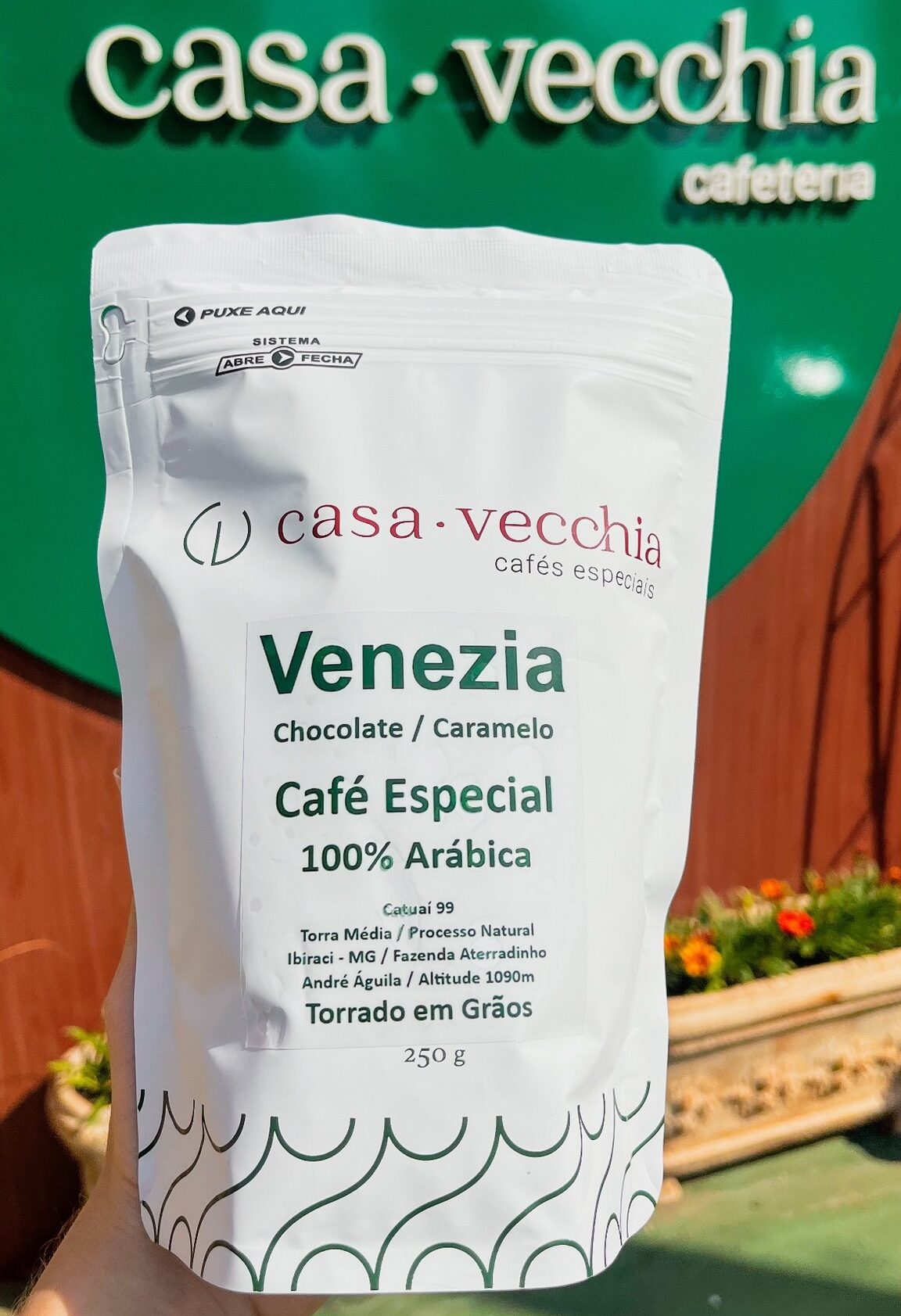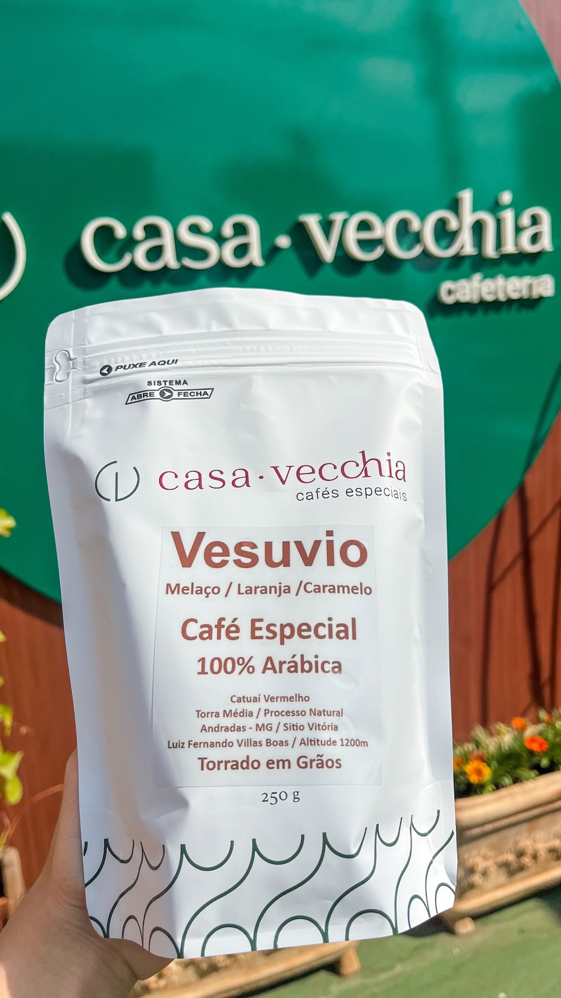 Na Casa Vecchia, o café é tratado com respeito e cuidado: são grãos especiais, com características sensoriais preservadas, que oferecem uma experiência rica e surpreendente — comparável até à complexidade de um bom vinho. E esse carinho se estende ao processo de torrefação, realizado ali mesmo, em pequenas quantidades, para garantir o frescor e o aroma que já se tornaram marca registrada do lugar.
