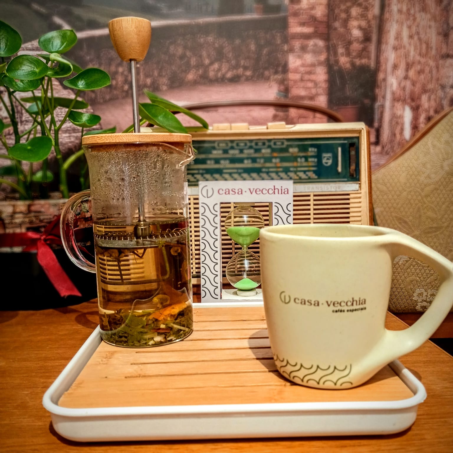 E para quem busca um momento de pausa, um respiro no meio do dia ou uma bebida que aqueça o coração, a Casa Vecchia oferece uma seleção especial de chás 100% naturais, preparados na hora, perfeitos para qualquer momento — seja para relaxar, aliviar o estresse ou simplesmente curtir um instante de aconchego e sabor.