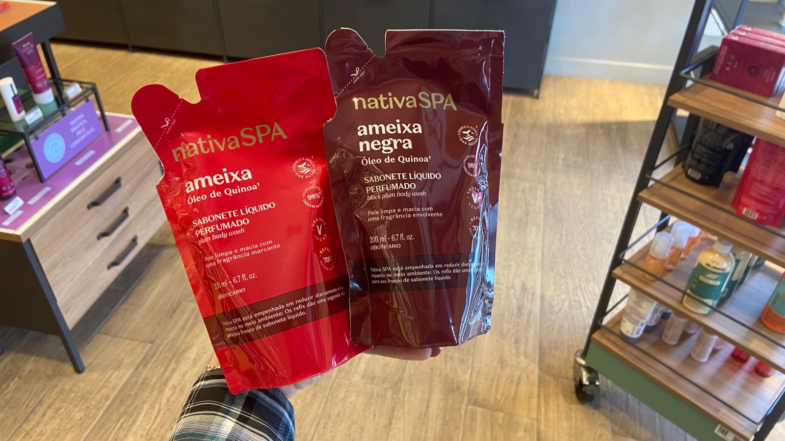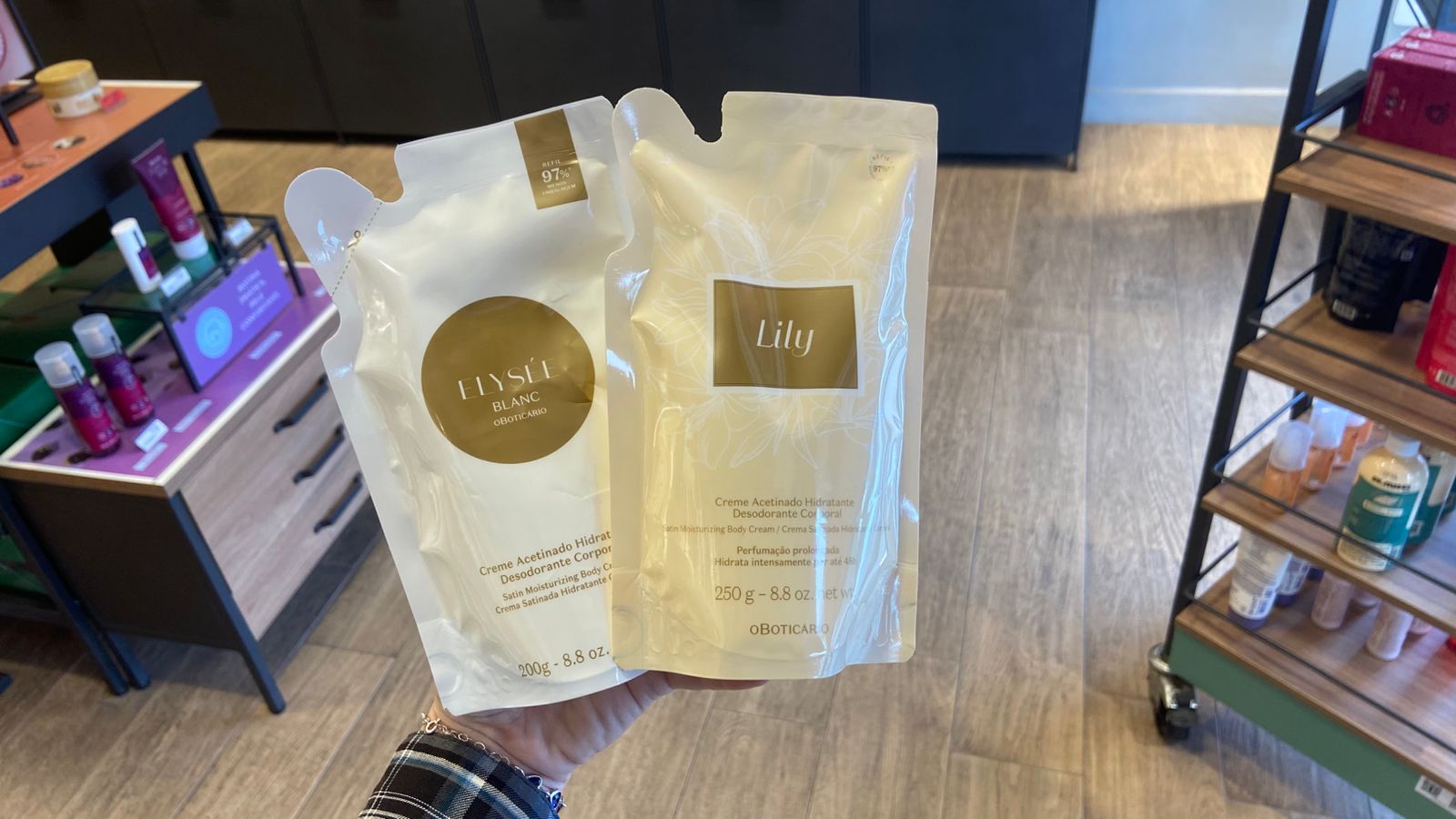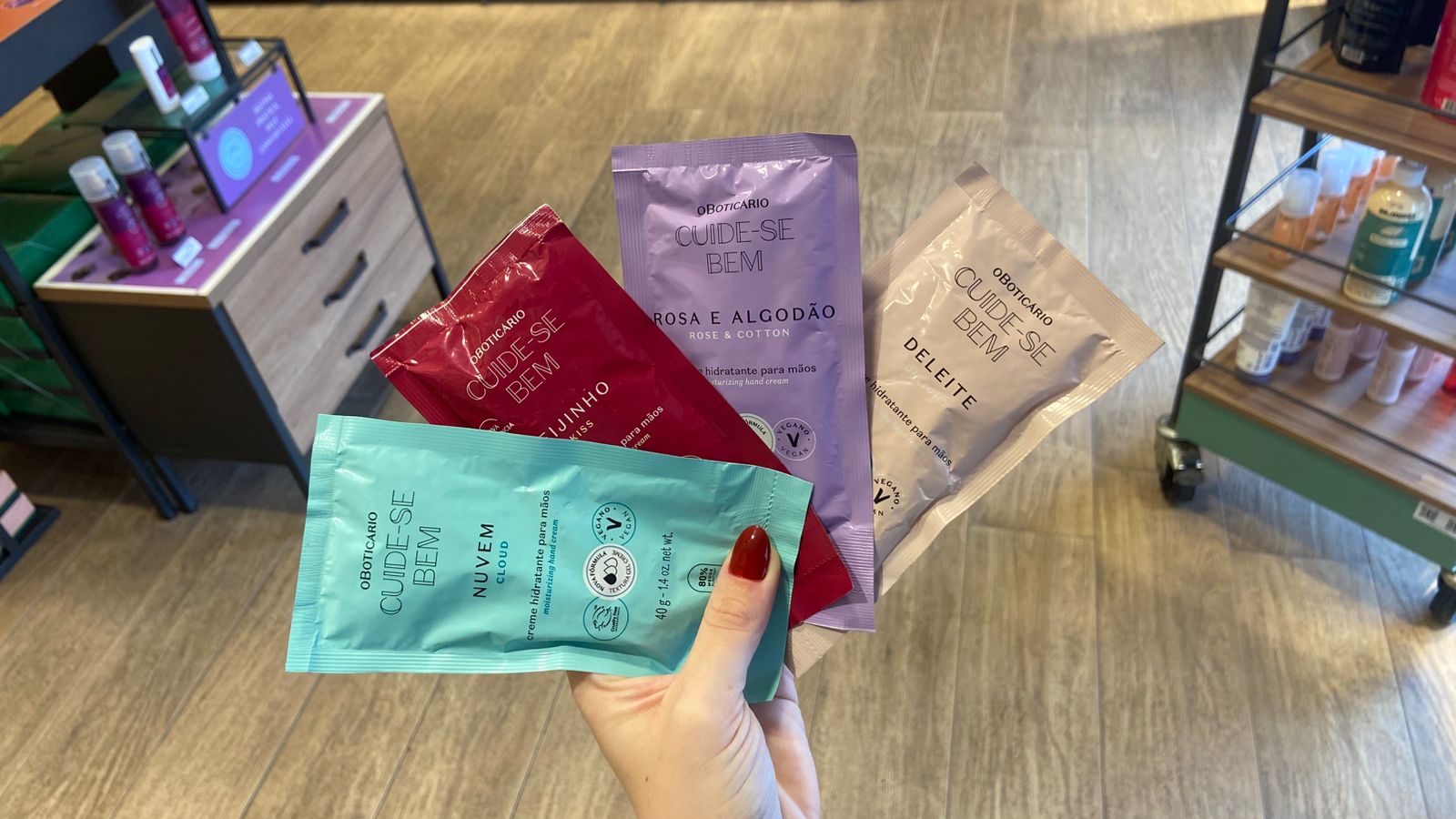 - Hidratantes corporais (como Nativa SPA e Cuide-se Bem);