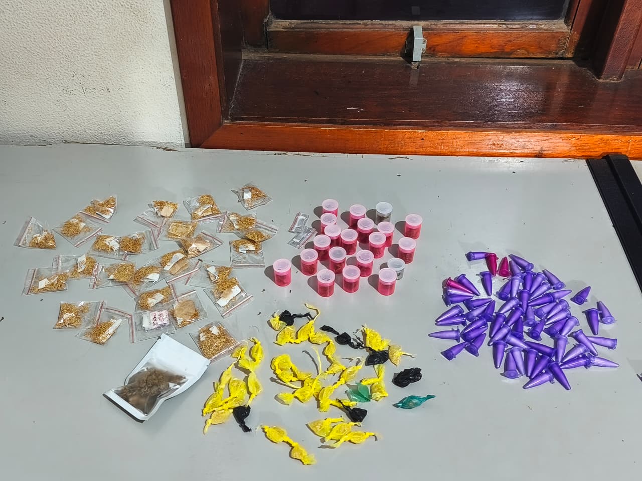 Durante buscas, ele não foi localizado. Porém, os agentes encontraram uma sacola contendo entorpecentes. Ao todo, foram apreendidos 49 porções de substância parecendo ser maconha, 60 porções de substância análoga à cocaína e 39 pedras parecendo ser crack. As drogas foram apreendidas.