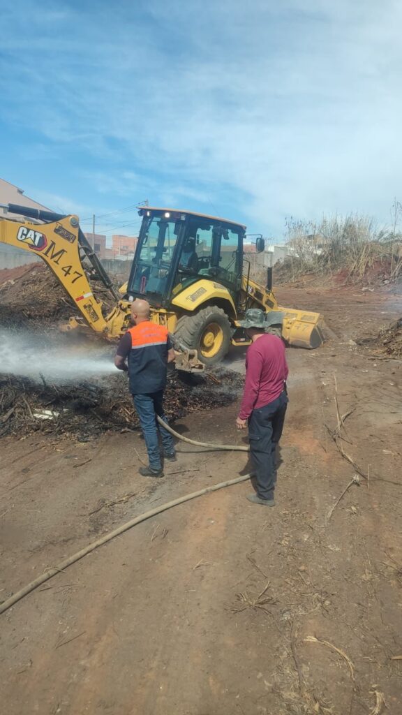 Desde a última quarta-feira (31), a Defesa Civil de Cosmópolis atua de forma ininterrupta no combate a um incêndio de grandes proporções em uma área de descarte de resíduos localizada no bairro São Pedro. O fogo, que atinge materiais descartados, exige uso intenso de recursos para contenção e resfriamento do local.