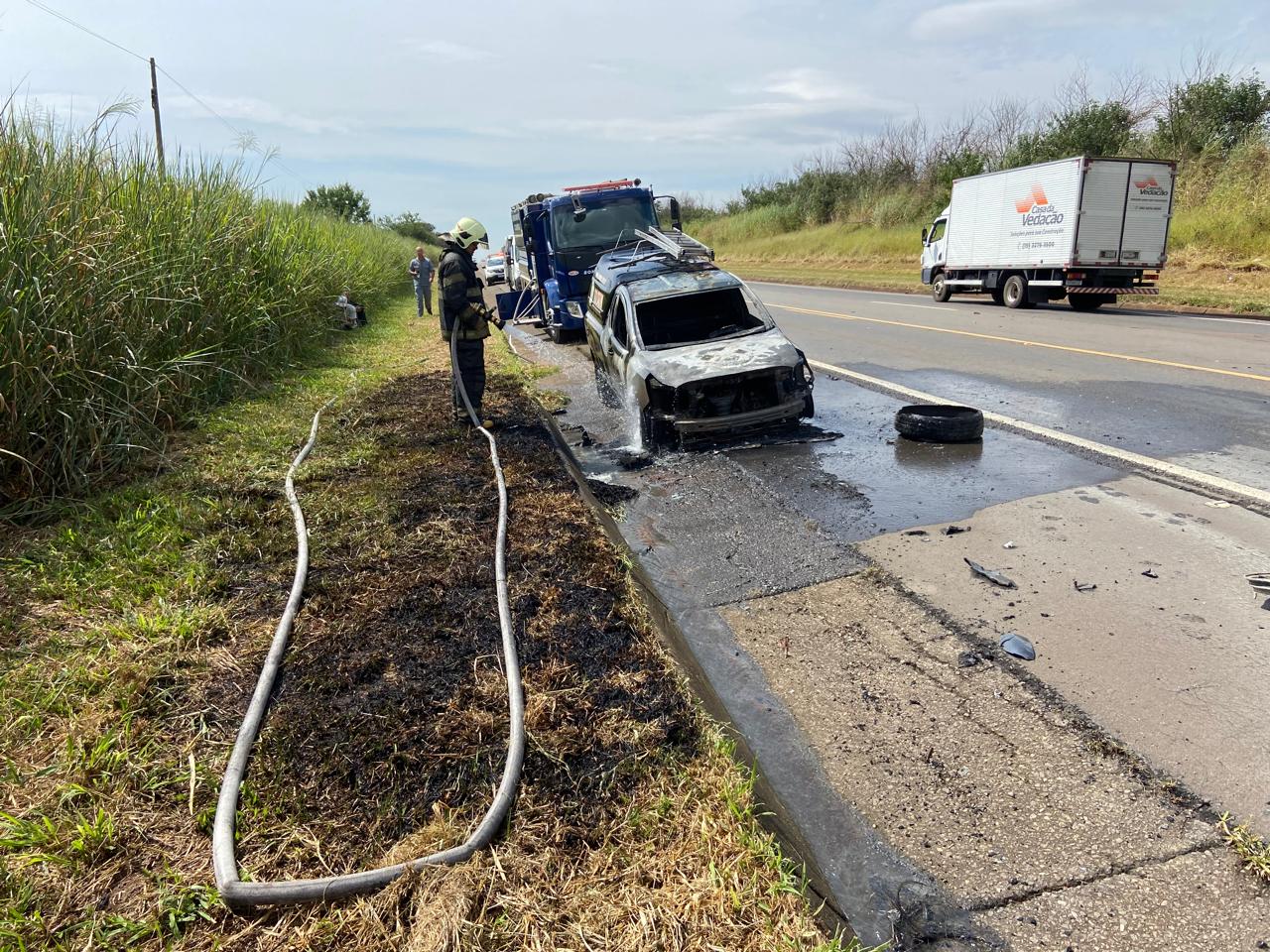 Incêndio em veículo provoca acidente entre dois carros em rodovia de Cosmópolis