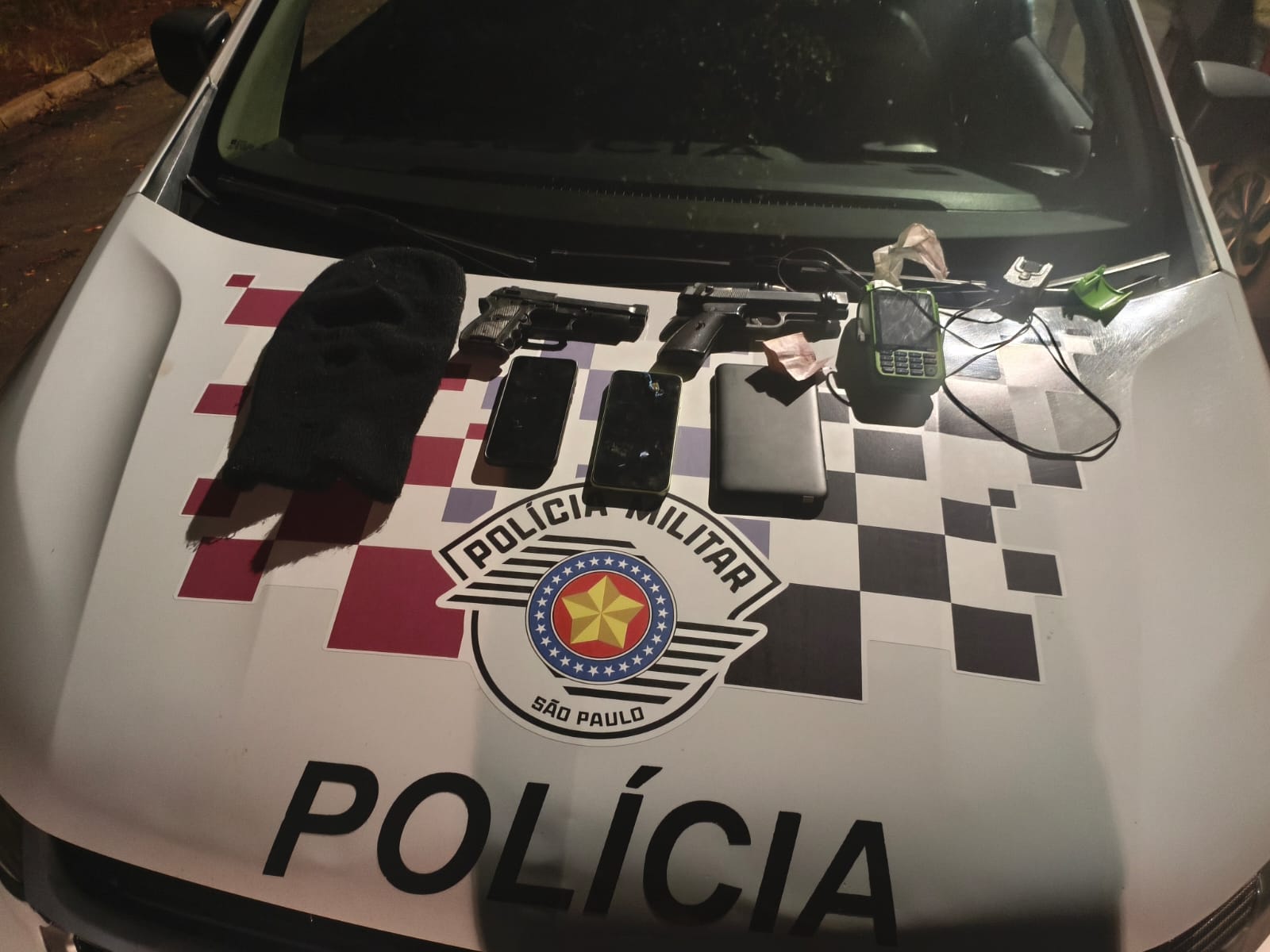 Ainda segundo a PM, houve tentativa de resistência e fuga, mas os suspeitos foram contidos e encaminhados à Delegacia de Polícia, onde permaneceram à disposição da Justiça. O veículo foi apreendido por apresentar indícios de adulteração nos sinais identificadores, e os demais objetos ficaram retidos para investigação.