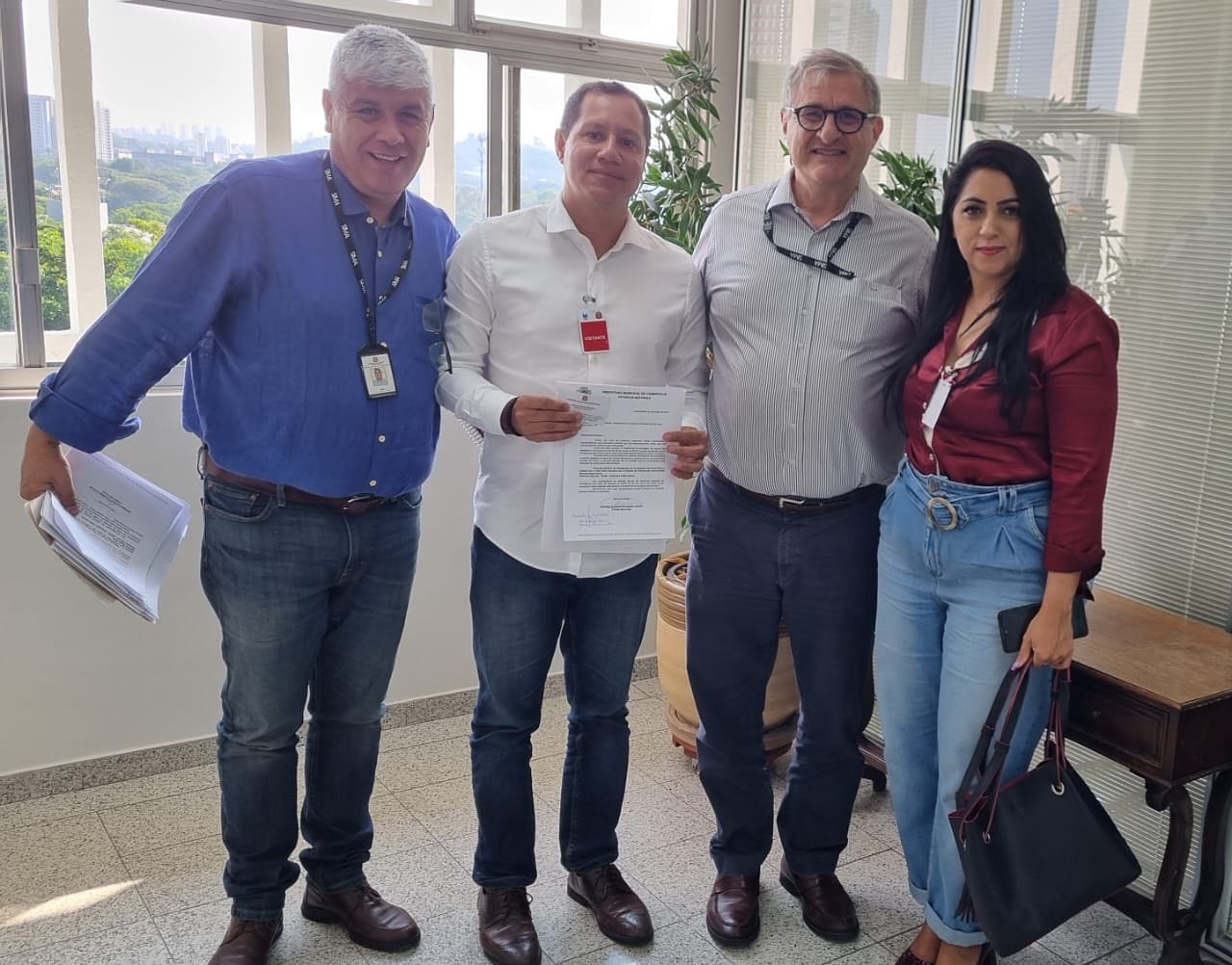 No dia 23 de março, o prefeito Junior Felisbino participa de uma reunião na Secretaria de Meio Ambiente, Infraestrutura e Logística para tratar do início da captação de água do rio Jaguari e da construção de uma nova adutora.