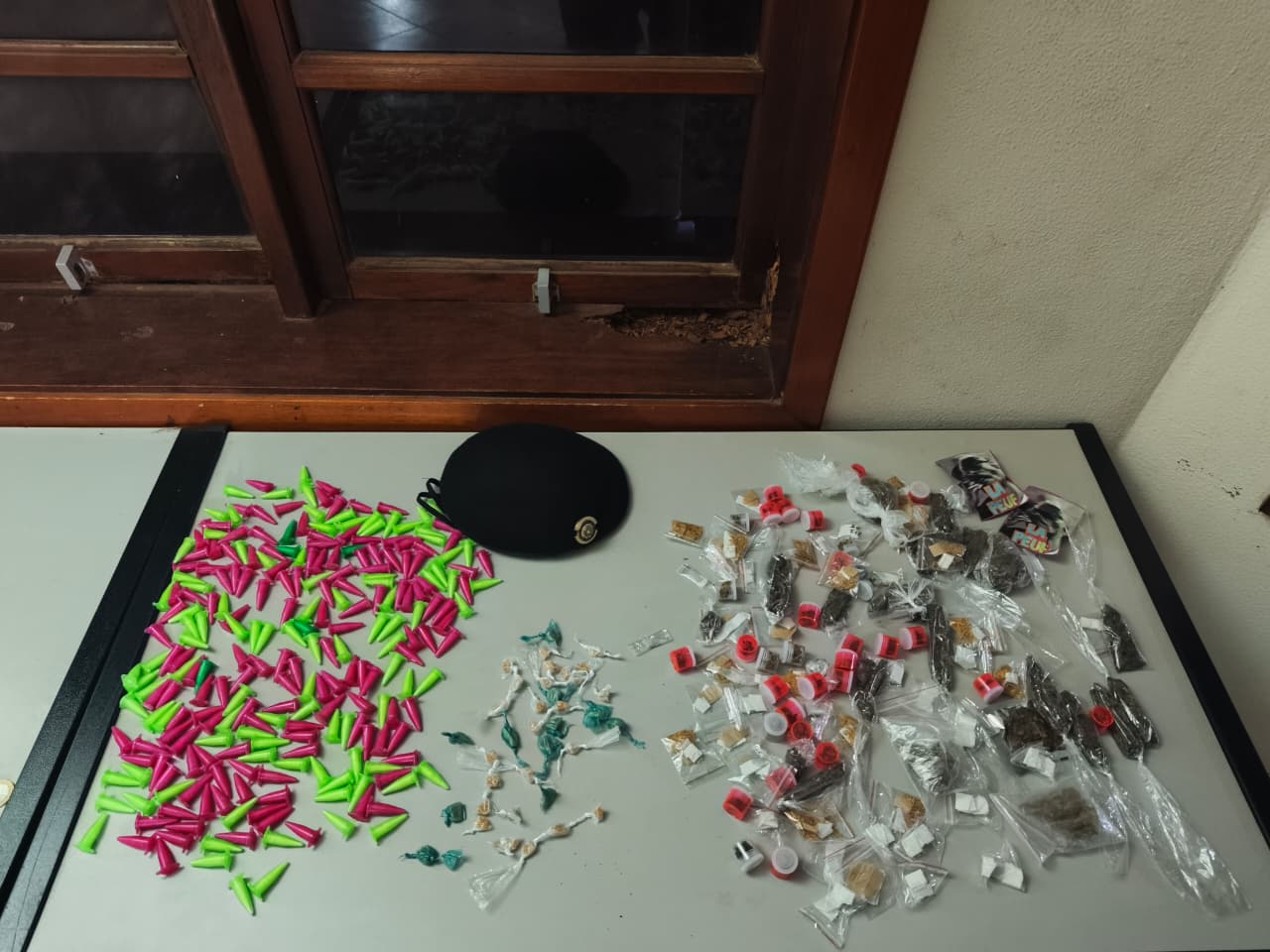 Após a verificação da sacola, os agentes constataram que havia grande quantia substâncias análogas a entorpecentes, como cocaína, crack e maconha no interior da embalagem.