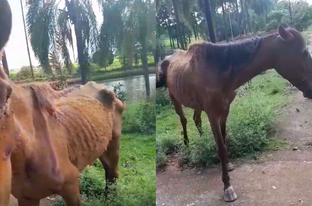 Equinos circulam pelo bairro há cerca de três semanas, com magreza extrema e indícios de doença; responsável não foi localizado