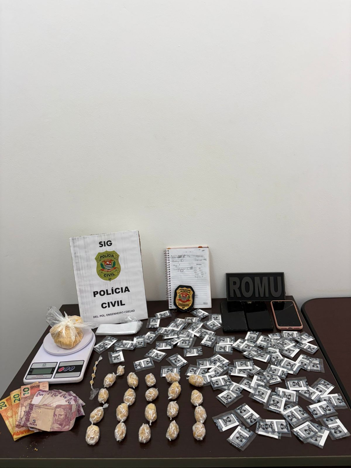 Uma mulher foi presa por tráfico de drogas em Engenheiro Coelho após investigação apontar que ela realizava entregas de entorpecentes no sistema delivery e armazenava porções em sua residência. A droga apreendida, segundo a apuração, seria comercializada durante as festividades de Carnaval na cidade.