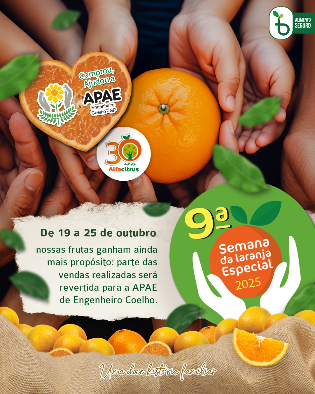 A 9ª edição da Semana da Laranja Especial já tem data marcada e chega repleta de significado. De 19 a 25 de outubro, a Alfacitrus promove mais uma edição da campanha que une o melhor do campo à solidariedade. Durante esse período, parte das vendas das laranjas da empresa será revertida para a APAE de Engenheiro Coelho, fortalecendo laços e transformando vidas.