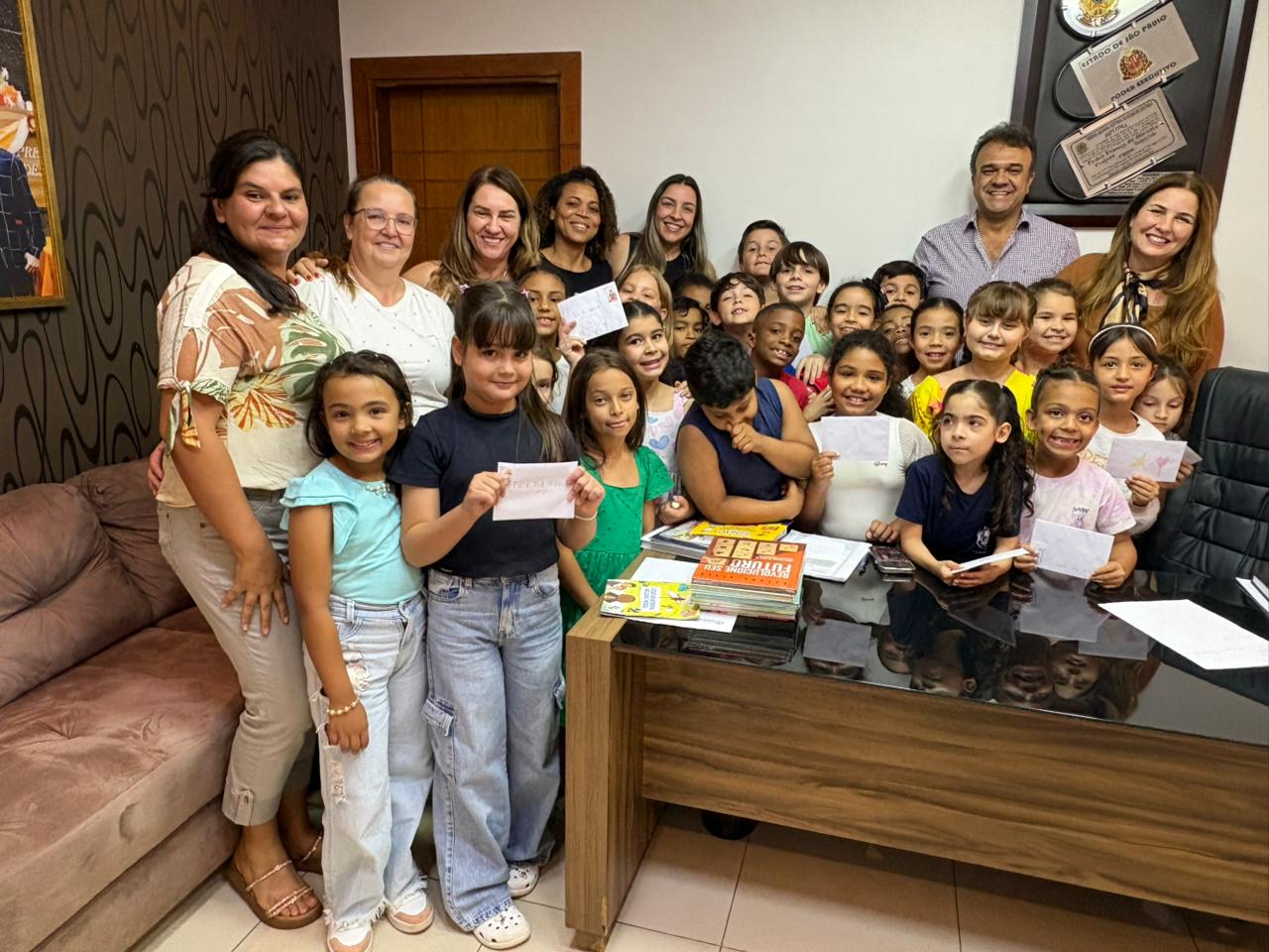 O encontro foi marcado por momentos de alegria, emoção e aprendizado. As crianças puderam entregar pessoalmente suas cartas, tirar fotos com a Secretária e compartilhar um bate-papo descontraído sobre o processo de escrita e a importância das palavras gentis no dia a dia. A Primeira-Dama também aproveitou a oportunidade para reforçar junto aos alunos a importância de valorizar a leitura, a escrita e o convívio respeitoso, pilares fundamentais na formação de cidadãos conscientes e solidários.