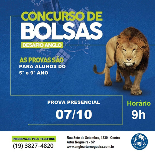 O Colégio Anglo está sempre incentivando e desafiando seus alunos a alcançarem os melhores resultados. Tendo isso em vista, a instituição lança em outubro o tradicional Concurso de Bolsas, voltado para os alunos do 5° ano, que irão migrar para o Ensino Fundamental II, e para os alunos 9° ano, que irão migrar para o Ensino Médio.