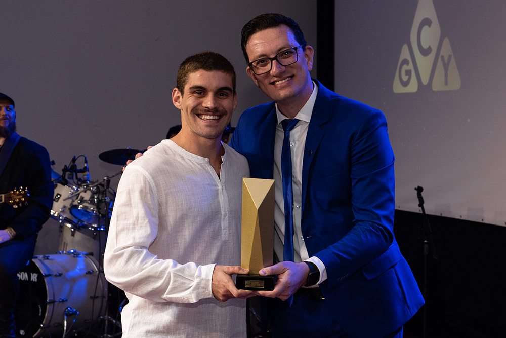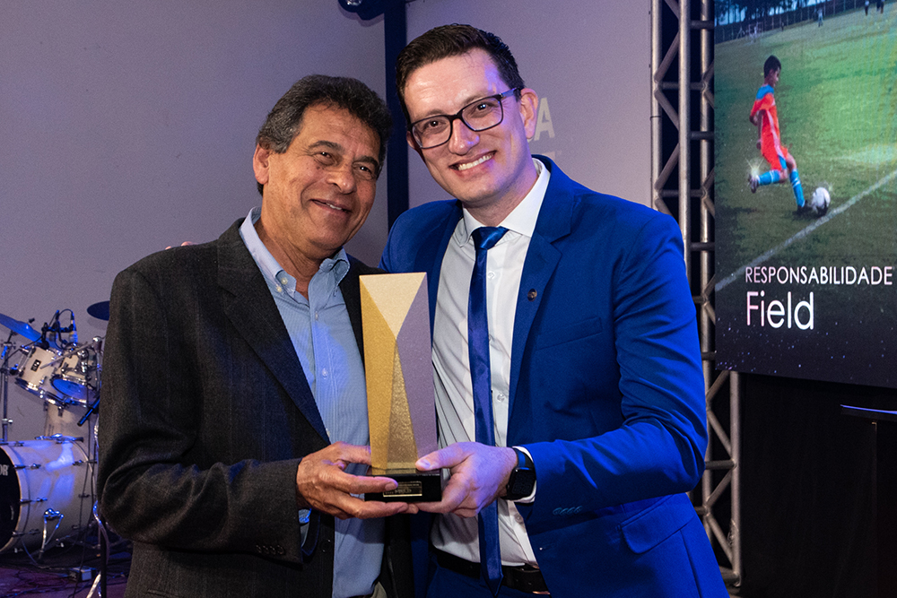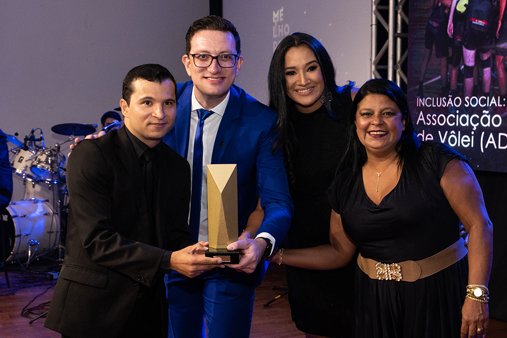 O esporte é um direito constitucional. Sua prática e seu impacto social vai muito além de resultados e performances individuais. Tem a ver com solidariedade, inclusão. O esporte pode salvar vidas, construir um futuro para jovens e crianças do nosso país. E por isso nosso homenageado é um projeto que vem fazendo um trabalho forte para trazer esses jovens para a prática esportiva. Em setembro deste ano, o time de vôlei masculino desta associação conquistou o título de campeão absoluto dos Jogos Abertos Regionais. Além dos excelentes resultados dentro das quadras, vêm dando uma nova vida para muitos jovens. O atleta Jonas Siqueira recebeu o prêmio.