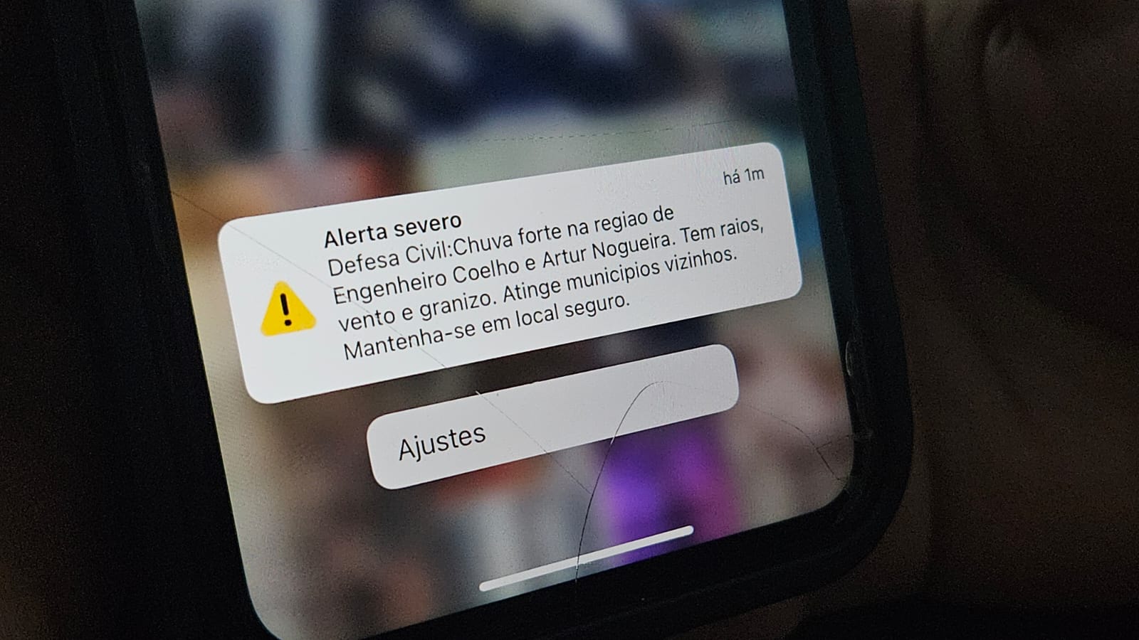Moradores de Artur Nogueira e Engenheiro Coelho receberam, na tarde desta terça-feira (3), uma notificação de alerta severo emitida pela Defesa Civil, informando a chegada de chuva forte, com registro de raios, ventos intensos e possibilidade de granizo.