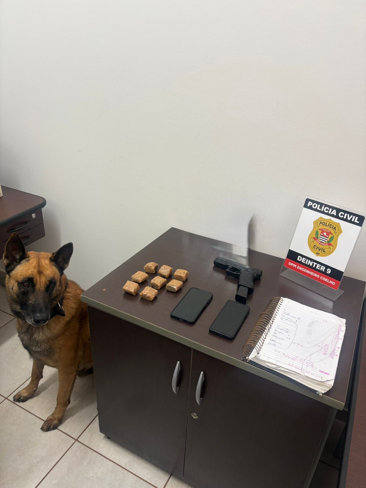 Uma operação da Polícia Civil de Engenheiro Coelho, com o apoio do Canil da Guarda Municipal e da Polícia Militar, terminou na localização de tabletes de maconha e de um simulacro de arma de fogo.