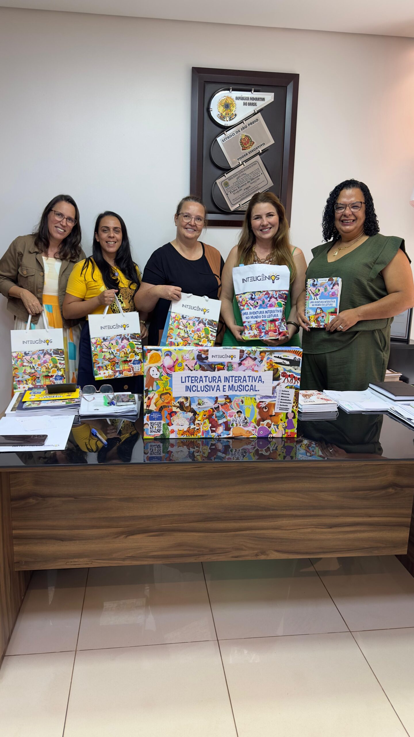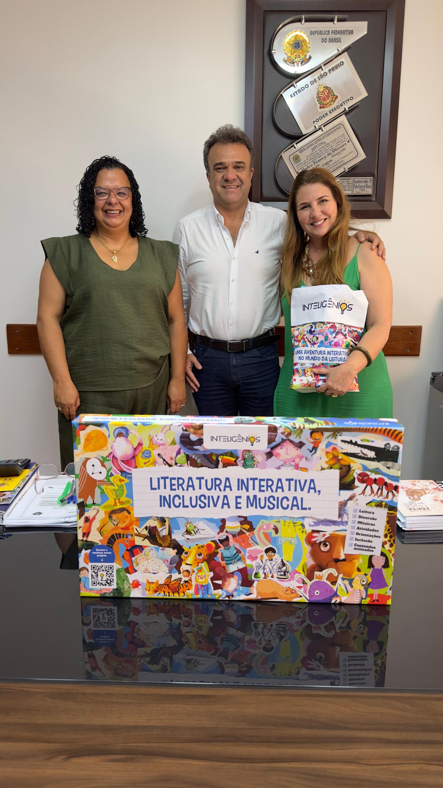 A Secretaria Municipal de Educação de Engenheiro Coelho recebeu, nesta semana, a representante da Editora Inteligênios, que apresentou à secretária de Educação e Primeira-Dama, Daniela Franco, a Coletânea Inteligênios — um projeto inovador que une literatura, diversidade e tecnologia.