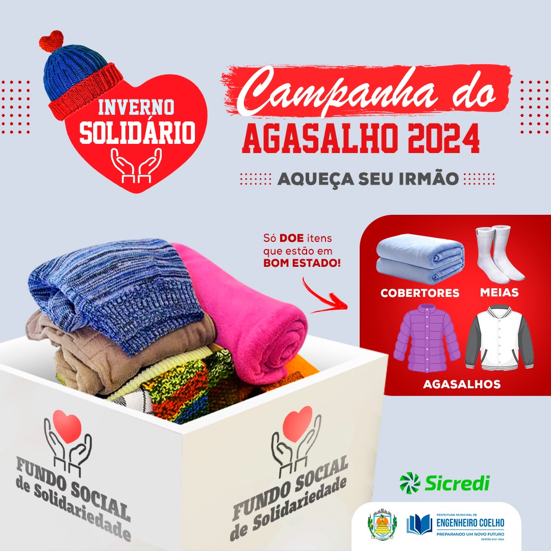A Prefeitura de Engenheiro Coelho, por meio da Assistência Social e do Fundo Social, está realizando a Campanha do Agasalho 2024, intitulada “Aqueça Seu Irmão”. Caixas identificadas para doações foram distribuídas no comércio da cidade para facilitar a coleta de roupas.