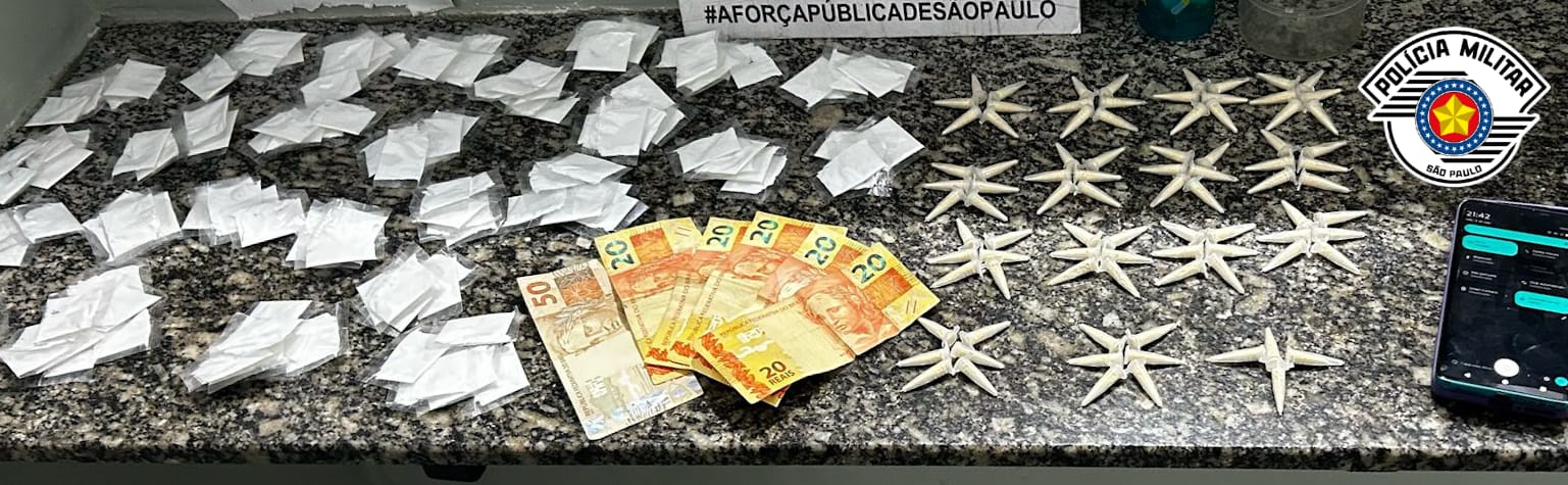 Um homem foi preso pela Polícia Militar por tráfico de drogas após os agentes encontrarem mais de 200 porções de entorpecentes durante a Operação Impacto, deflagrada na cidade.