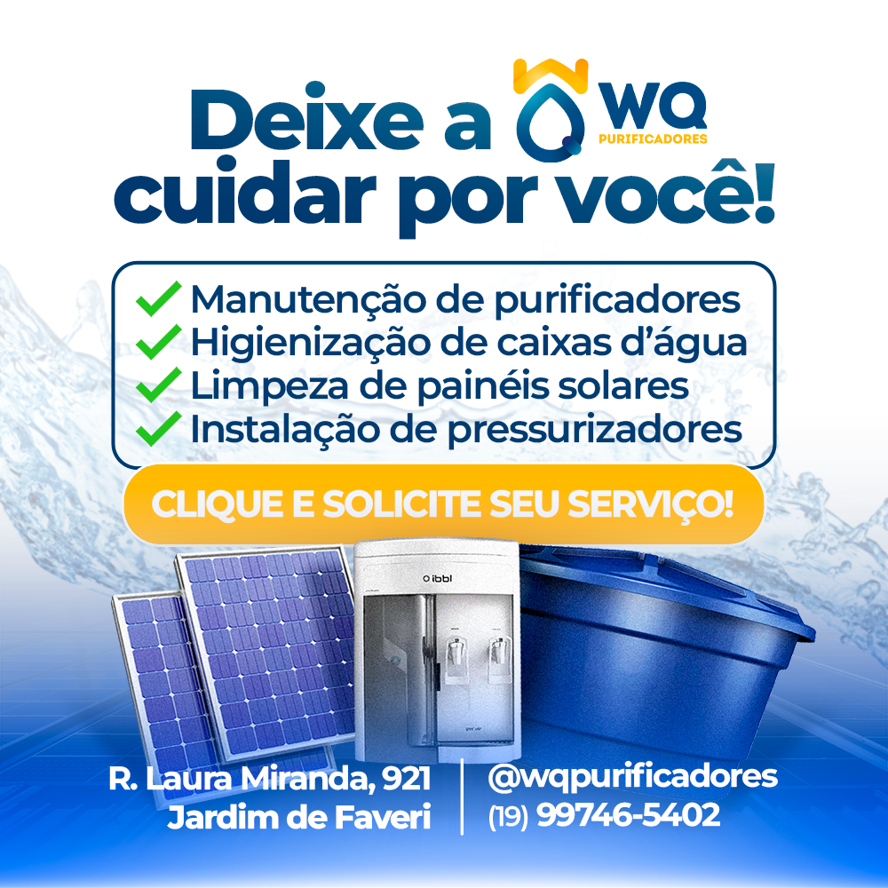 Localizada em Artur Nogueira, a WQ Purificadores é especializada em manutenção de purificadores, higienização de caixas d’água, limpeza de painéis solares e instalação de pressurizadores. A empresa une conhecimento técnico e atendimento humanizado para entregar mais conforto, segurança e tranquilidade aos seus clientes.