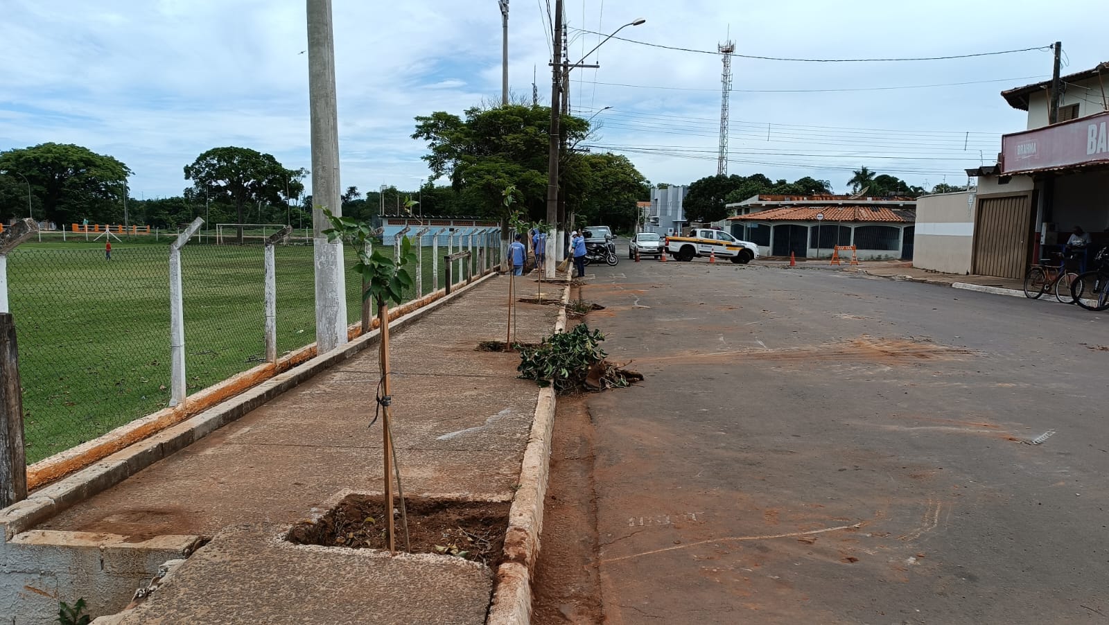 Troca das árvores aconteceu na rua Catariana Fraveto Caetano, no trecho ao lado do Estádio Distrital Artur Vicente Caetano, no Jardim Brasil