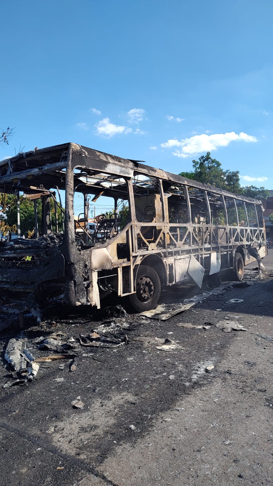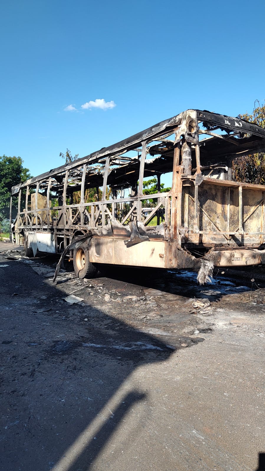 Ônibus fica destruído após ser atingido por incêndio em Engenheiro Coelho