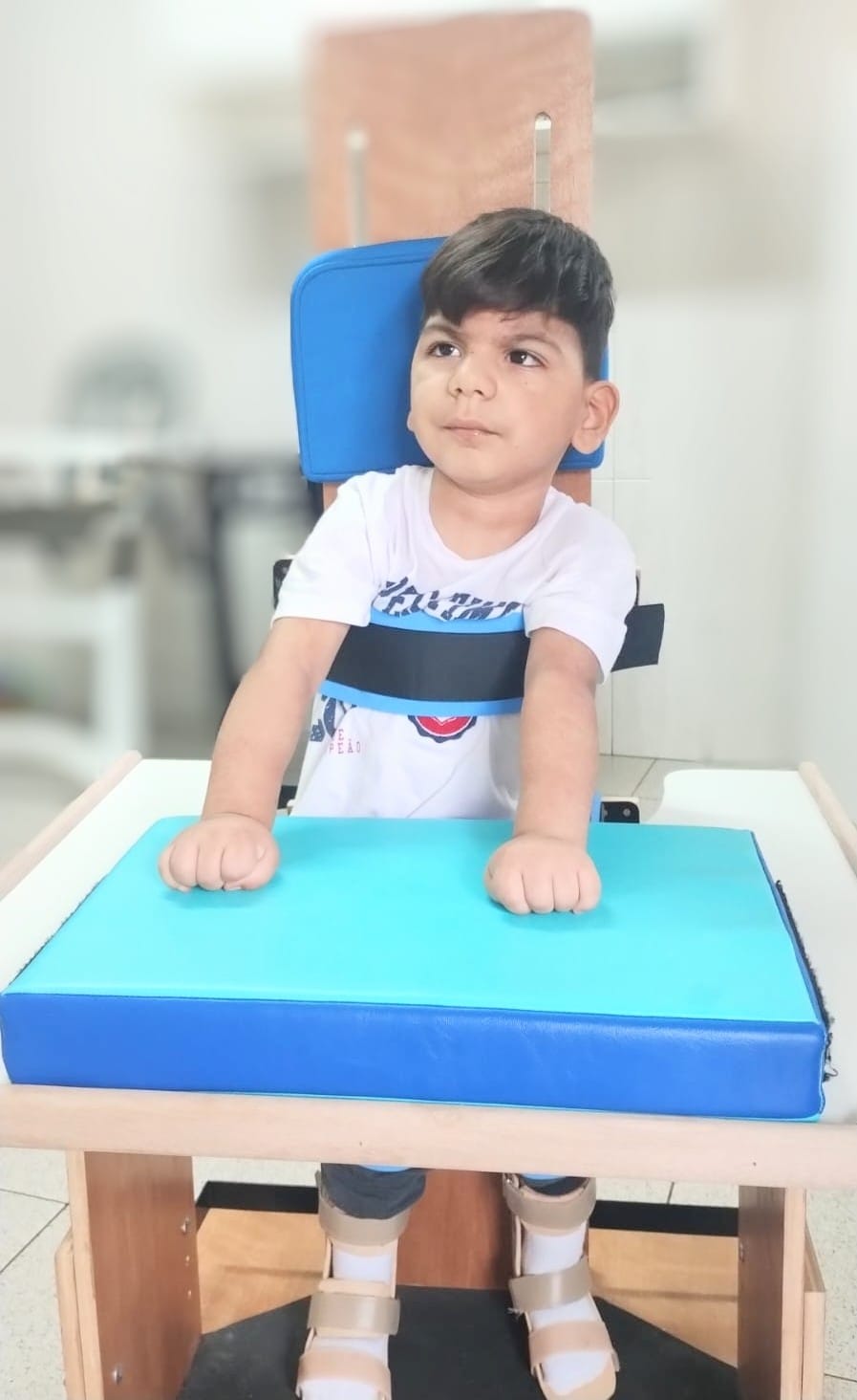 Hoje, Elias apresenta paralisia cerebral grau 5 — o nível mais grave —, o que o impede de andar e o obriga a se alimentar por meio de sonda. “Ele depende de fisioterapia, fonoaudióloga, terapia ocupacional e outros exercícios terapêuticos. Esses estímulos são essenciais para sua qualidade de vida, mas infelizmente nosso município não oferece esse suporte com a frequência necessária. Por isso, buscamos atendimento em outras cidades”, explica Jaqueline.