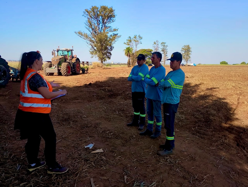 O treinamento foi conduzido pela profissional de Segurança do Trabalho Vanessa Ferreira dos Santos, que trouxe orientações essenciais sobre prevenção de acidentes, manuseio adequado de equipamentos e procedimentos seguros no dia a dia da lavoura.