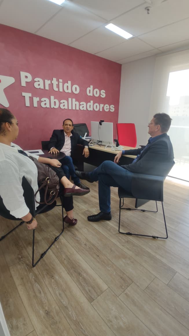 Durante a agenda, o parlamentar esteve no escritório do deputado federal Jilmar Tatto (PT), onde foi recebido pela assessora Cássia e pela representante executiva nacional do partido, Rose Gaspar.