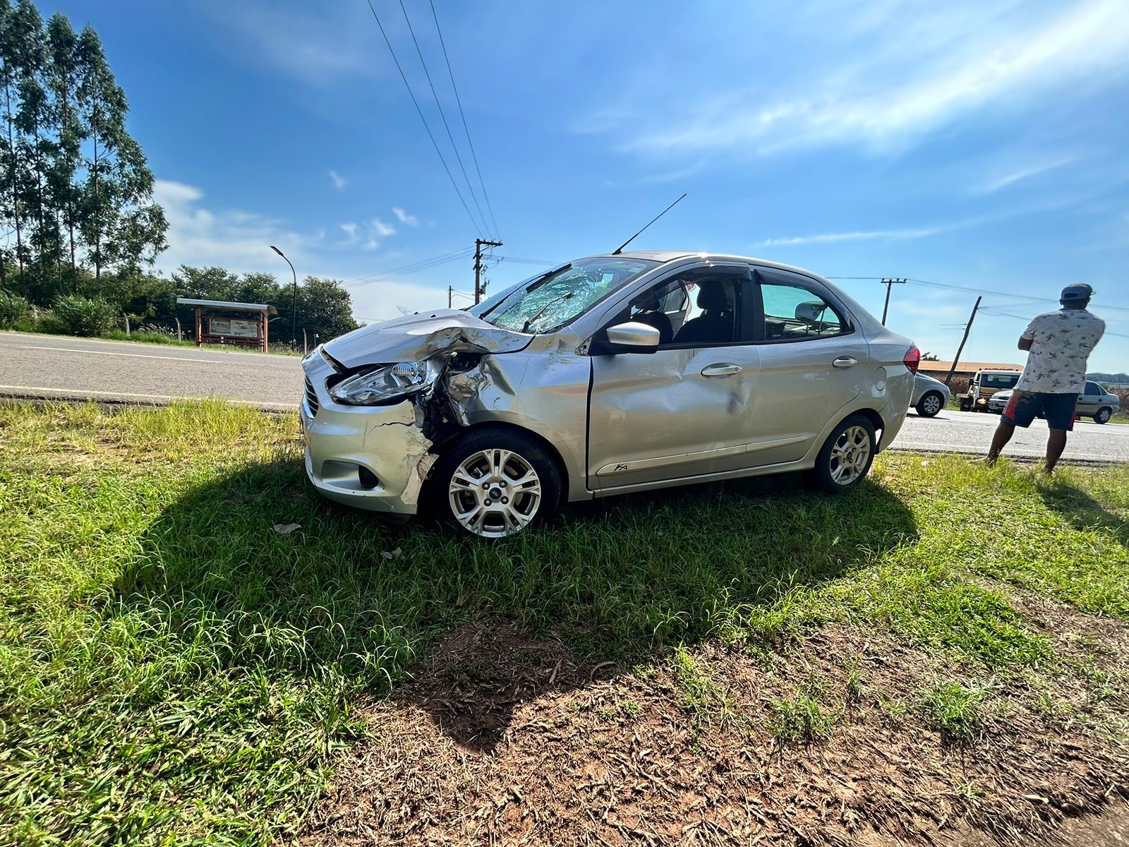 Tanto o carro quanto a moto tiveram danos severos na região frontal e permaneceram ao acostamento da rodovia para serem retirados do local através de guincho.