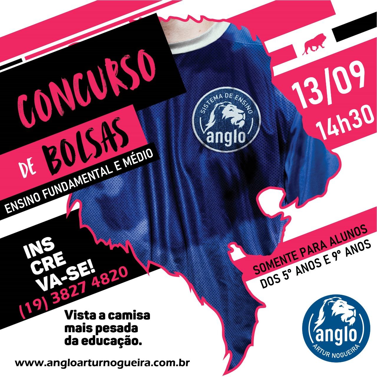 O Colégio Anglo de Artur Nogueira está com uma super novidade, concurso de bolsas para alunos que estão no 5º ano e vão para o 6º ano e para os que estão cursando o 9º ano e vão entrar no Ensino Médio em 2023. Essa é uma ótima oportunidade para os pais conhecerem mais sobre o desempenho do seu filho e ainda conseguir um desconto de até 30% na bolsa para o ano letivo de 2023.