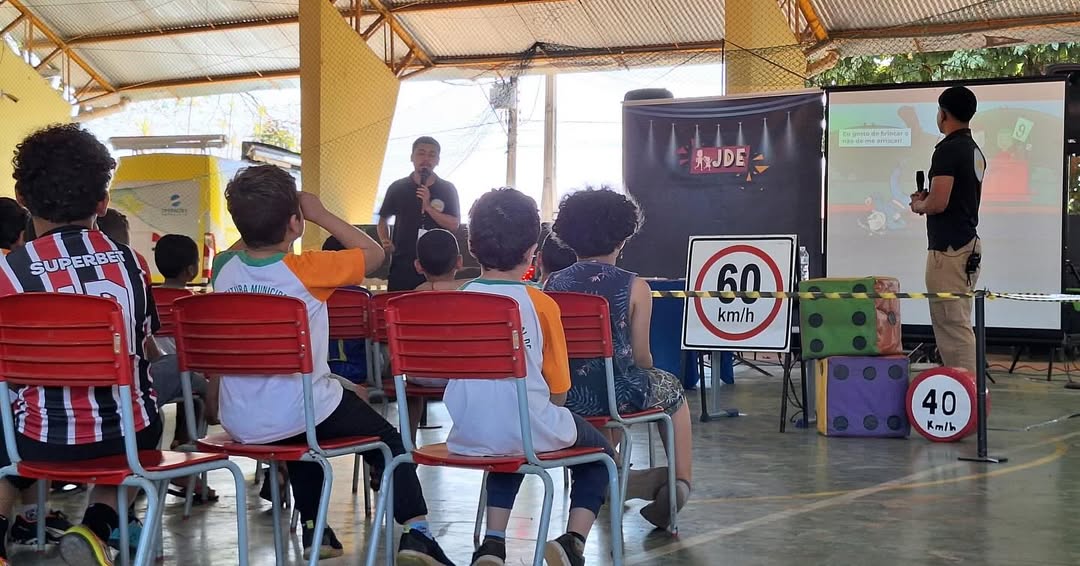 Durante a ação, os estudantes participaram de rodas de conversa e dinâmicas de grupo que abordaram temas como sinalização, velocidade, distância segura entre veículos e uso correto das faixas de pedestres.