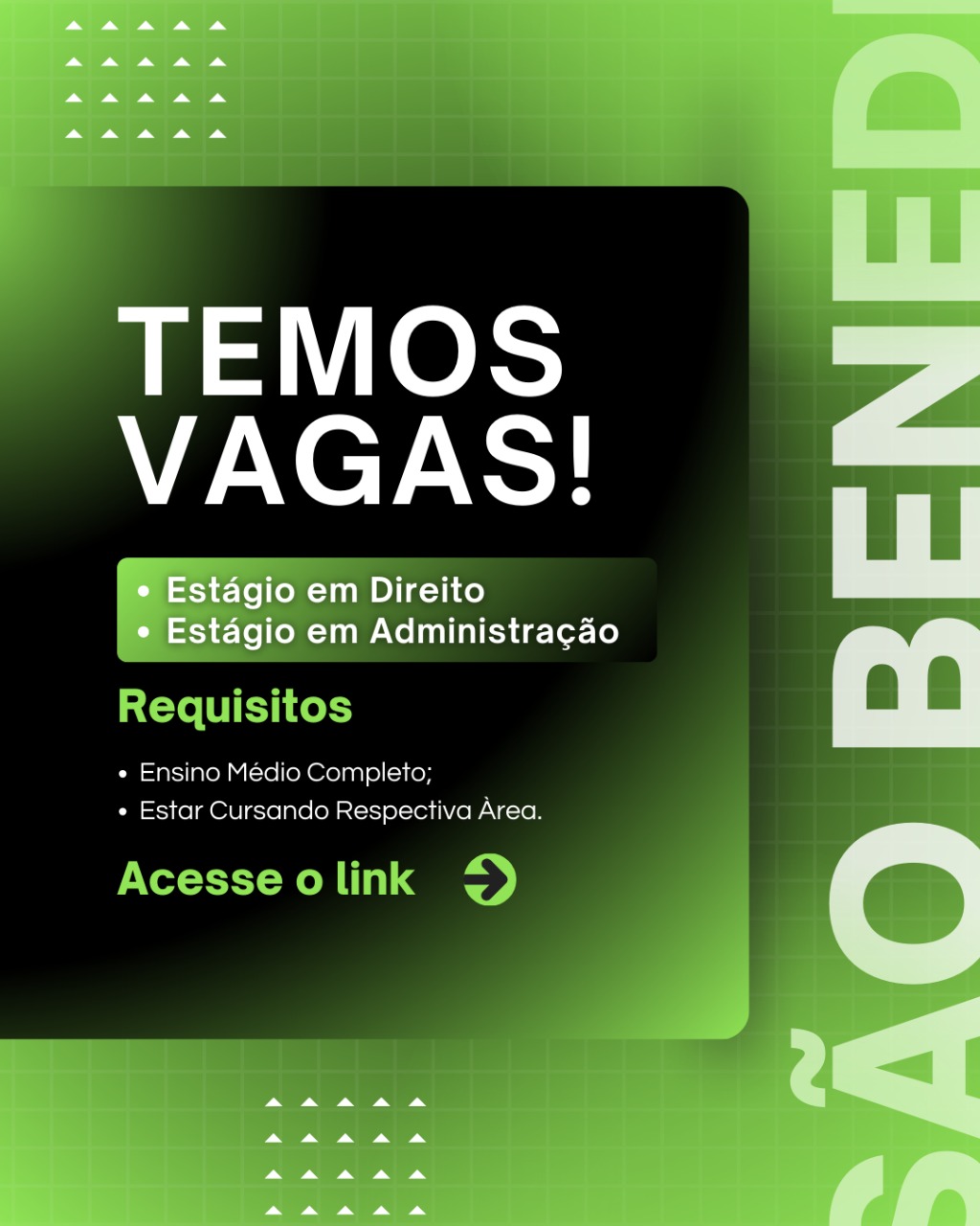 Escritório São Benedito abre vaga para Estágio em Direito e Administração