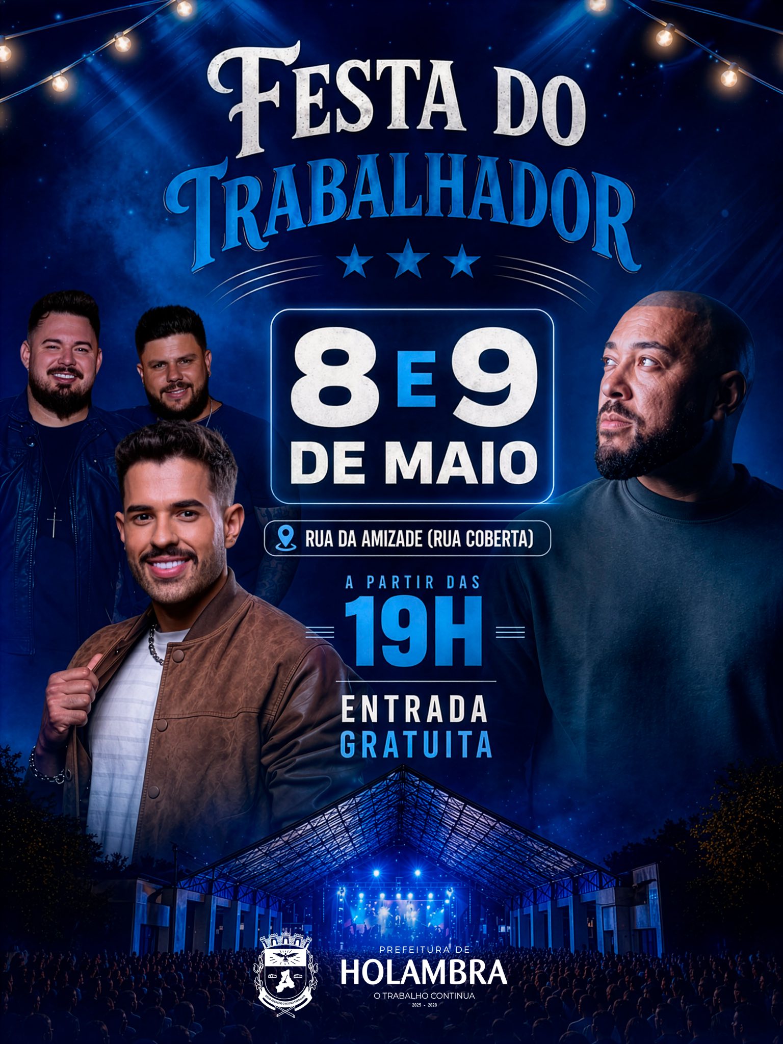 A Prefeitura de Holambra promove nos dias 8 e 9 de maio a Festa do Trabalhador, com shows gratuitos na Rua Coberta. A programação contará com duas noites de apresentações musicais em homenagem ao Dia do Trabalhador.