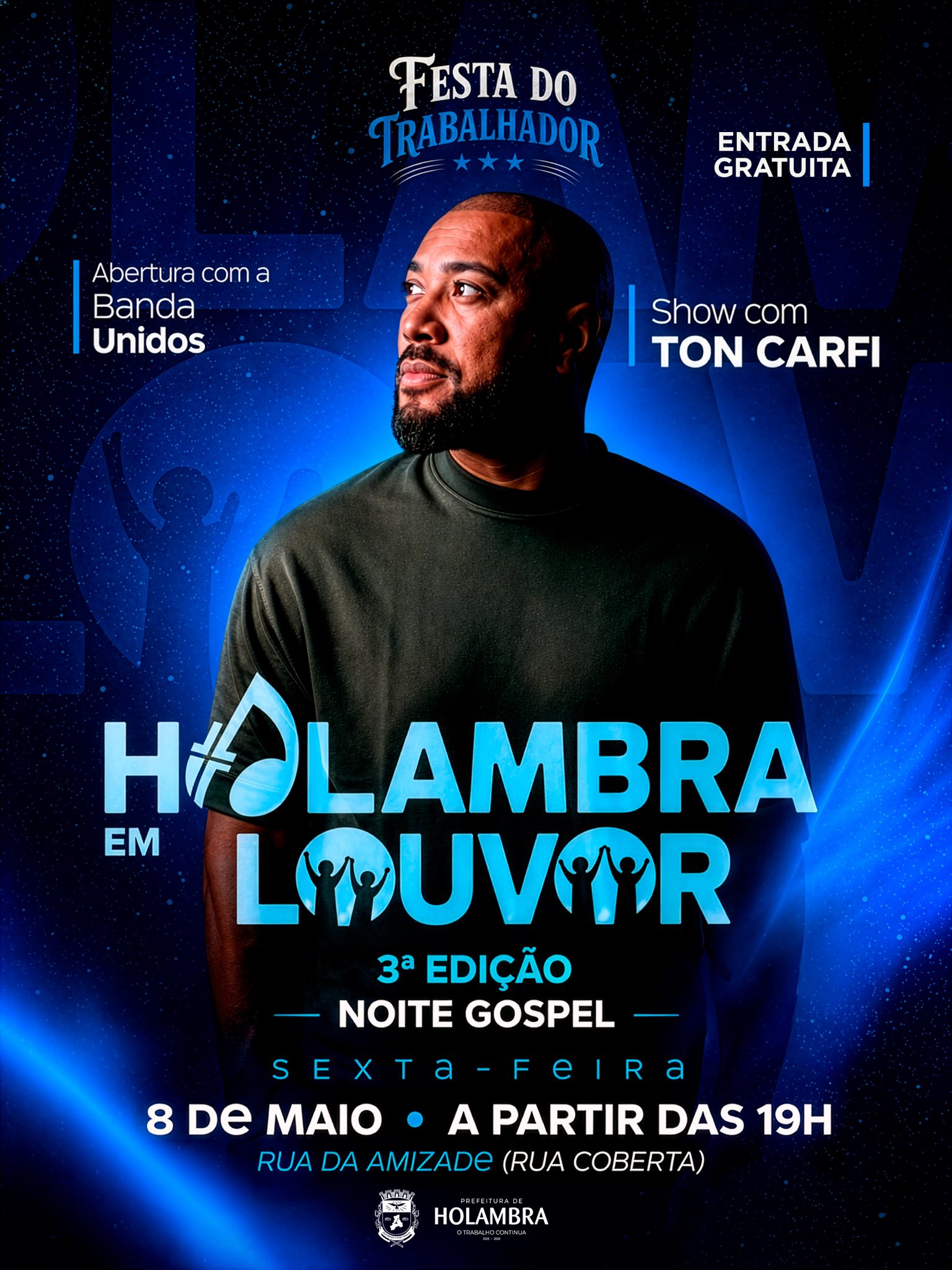 Na sexta-feira, 8 de maio, acontece a terceira edição do “Holambra em Louvor”, com uma noite gospel. Sobem ao palco a Banda Unidos e o cantor Ton Carfi, conhecido por músicas como Minha Vez e Porque Eu Te Amei.