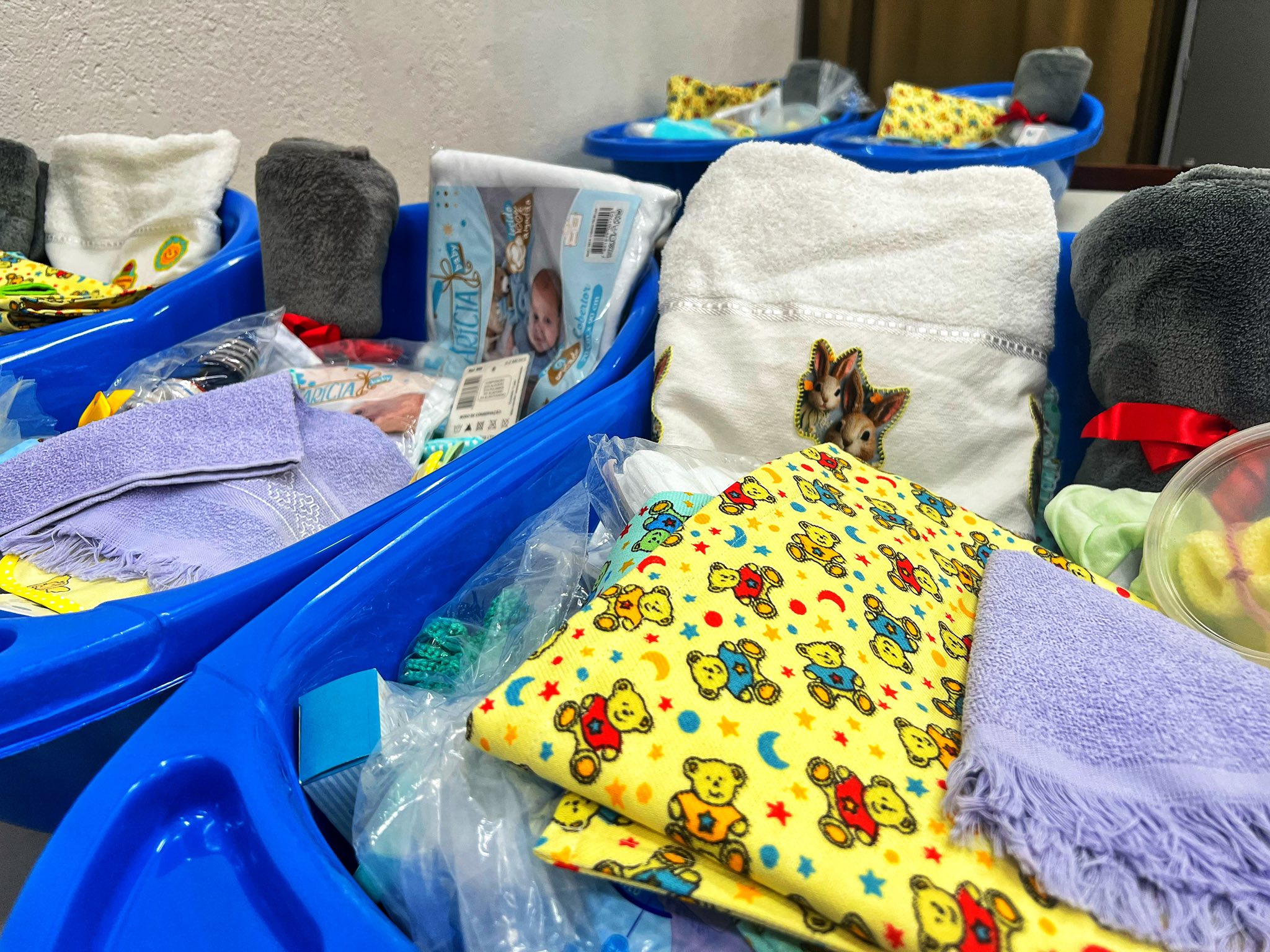 Participantes receberam itens como banheira, fraldas, pomada para assaduras e sabonetes