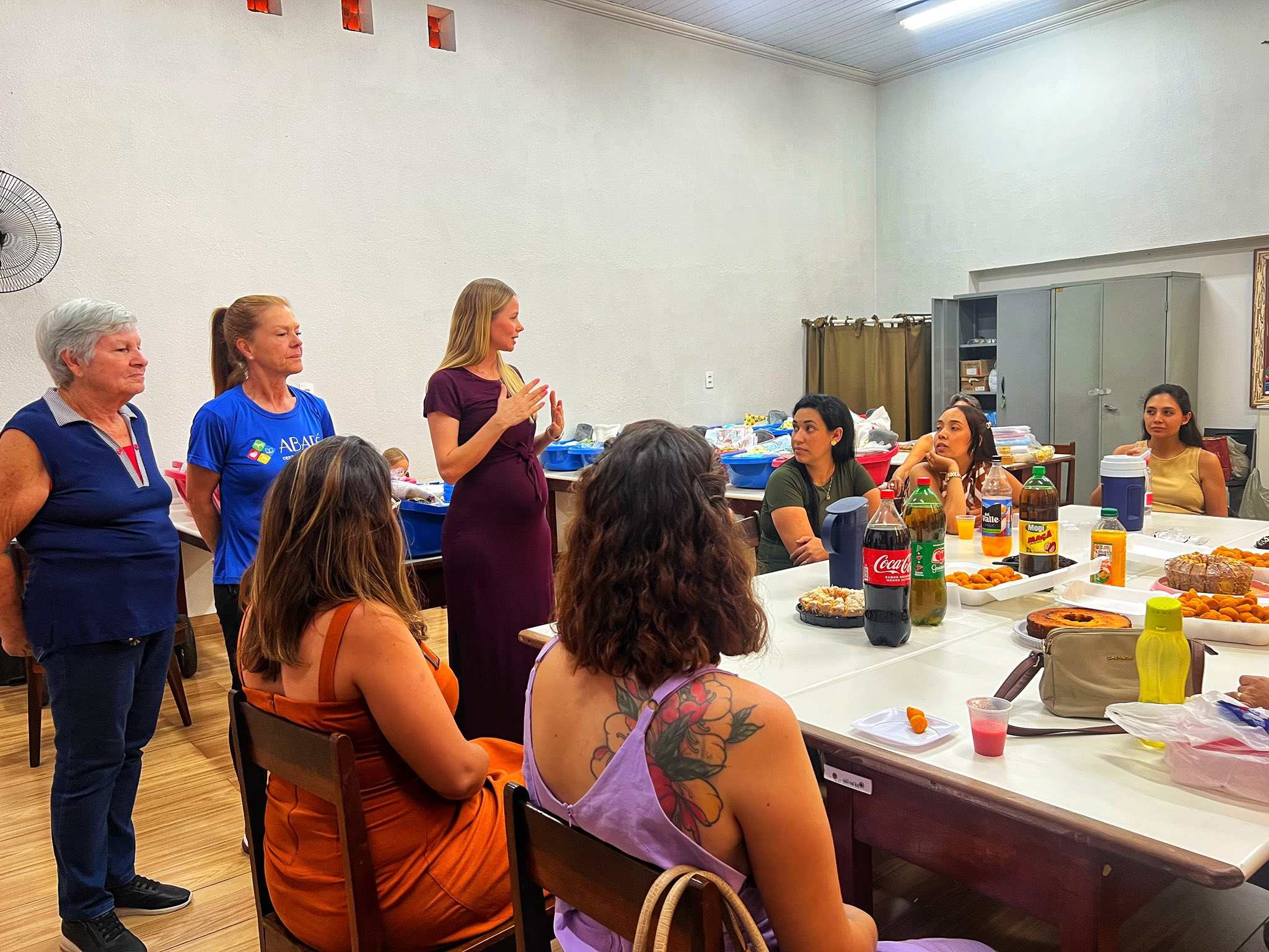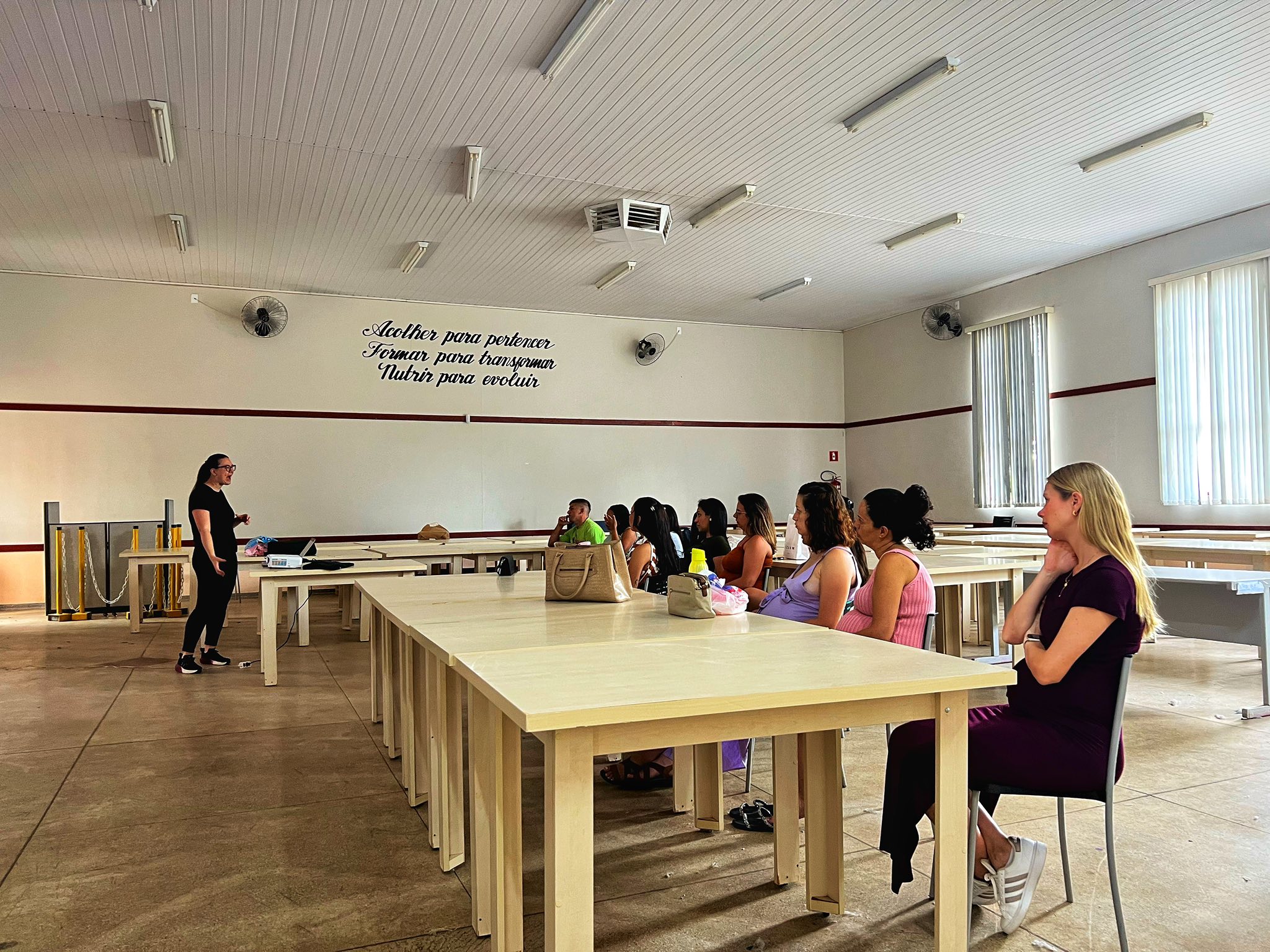 A atividade, gratuita e aberta a todas as gestantes do município, aborda temas como evolução da gravidez, tipos de parto, amamentação, cuidados com o recém-nascido e confecção do enxoval. O encontro também funciona como um espaço de troca de informações entre as participantes.