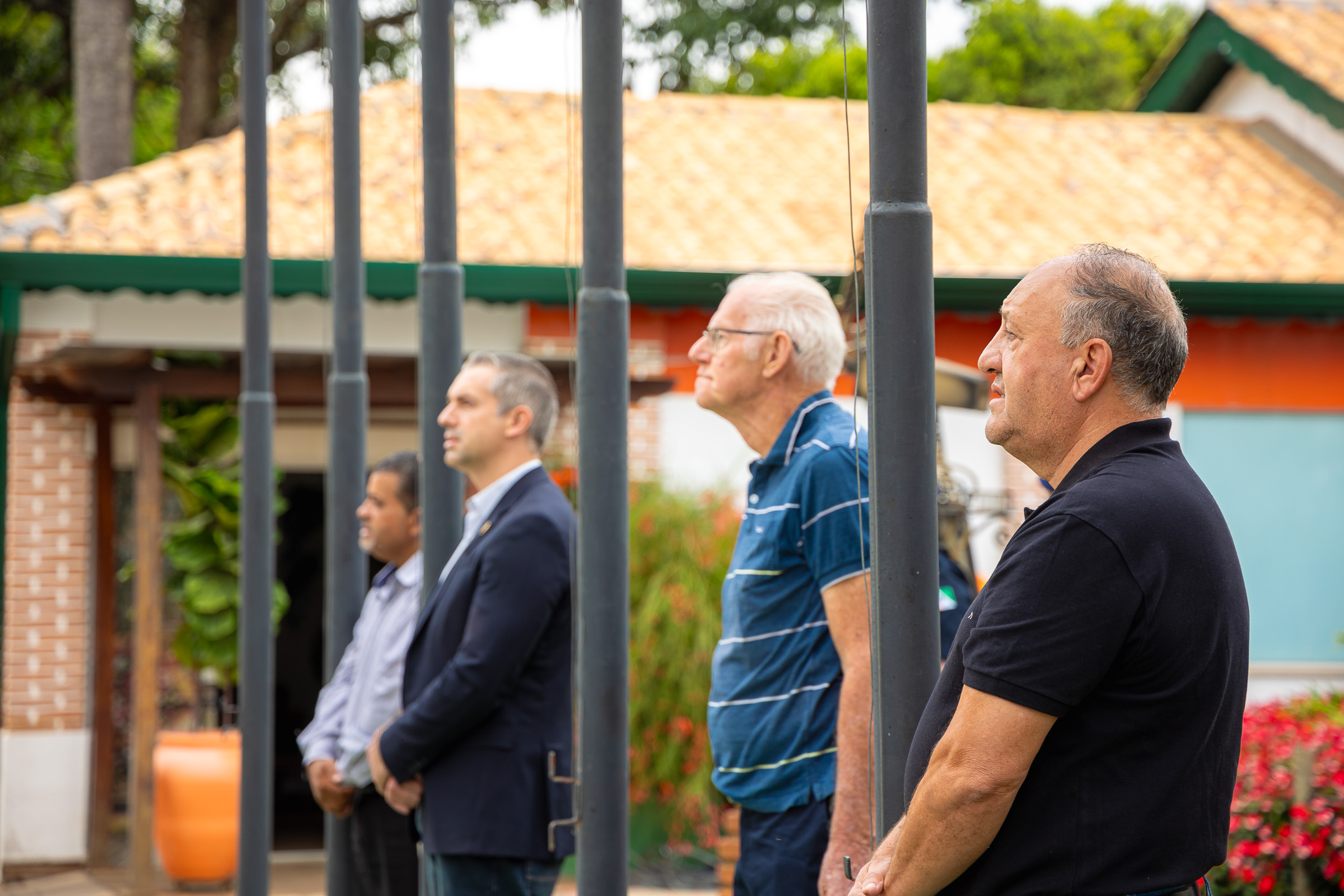 Holambra encerrou, na manhã desta segunda-feira (27), a programação de seu 34° aniversário com uma cerimônia de hasteamento de bandeiras realizada na área externa do Paço Municipal. O evento reuniu autoridades políticas, servidores públicos e moradores da cidade.