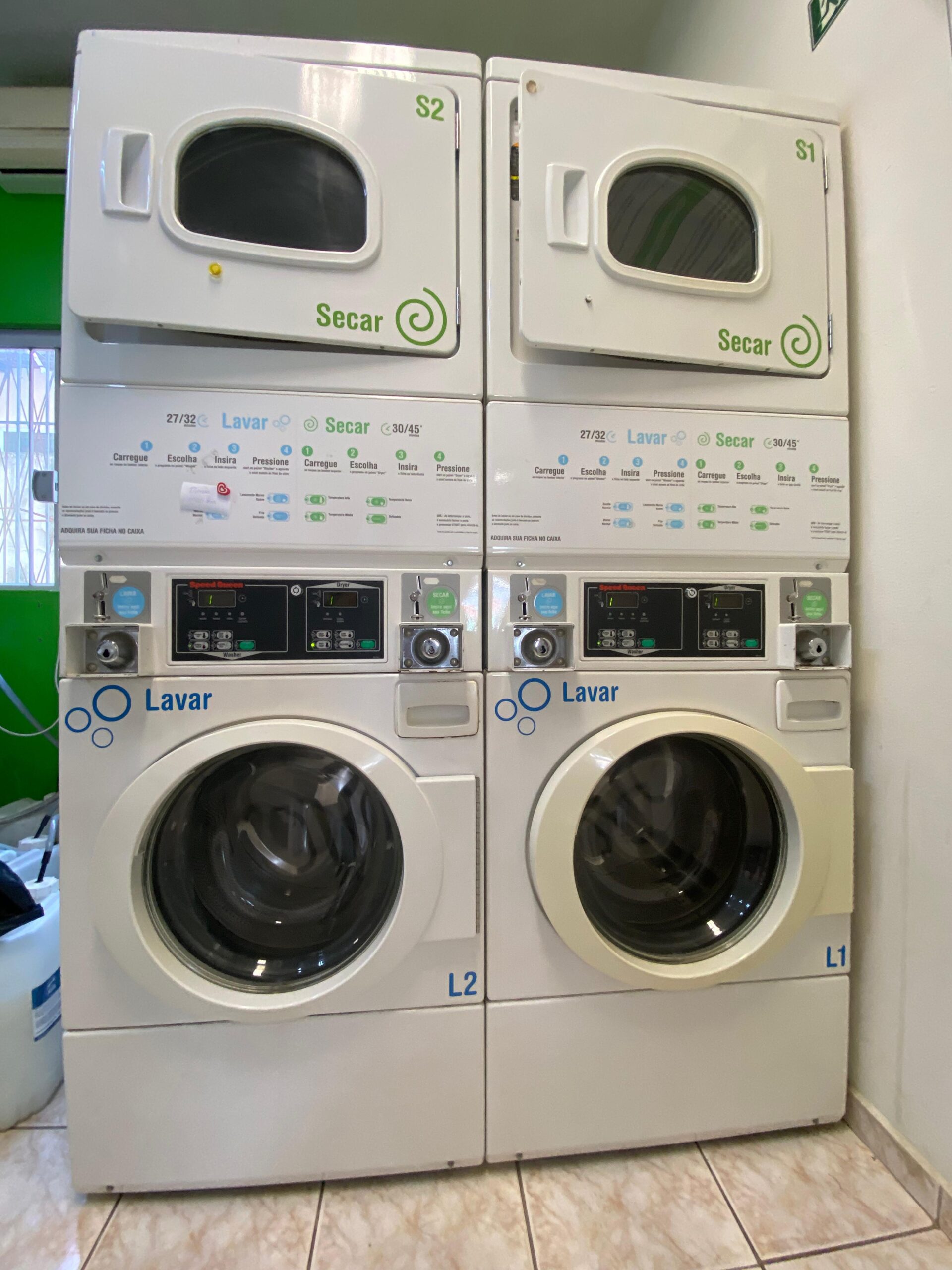 Self-Service (Faça Você Mesmo): Inspirado no modelo americano, o cliente traz suas peças, coloca na máquina para lavar e, em seguida, passa para a secadora. O valor é de R$ 20 para lavar e R$ 20 para secar aproximadamente 20 peças, o que inclui roupas do dia a dia como camisetas, meias e peças íntimas. Caso prefira, é possível usar o serviço apenas para secar as roupas ou apenas lavar e levar para secar em casa.