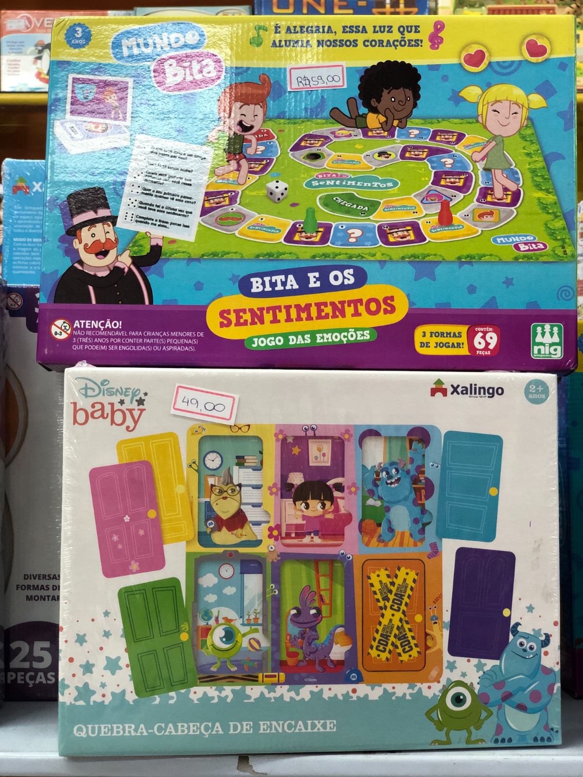 A loja conta com brinquedos de linguagem e comunicação, que ajudam na socialização e no aprendizado acadêmico, jogos que ensinam matemática, português e geografia de forma divertida e peças de madeira que além de serem duráveis e resistentes estimulam a criatividade, a imaginação e o desenvolvimento de habilidades motoras.