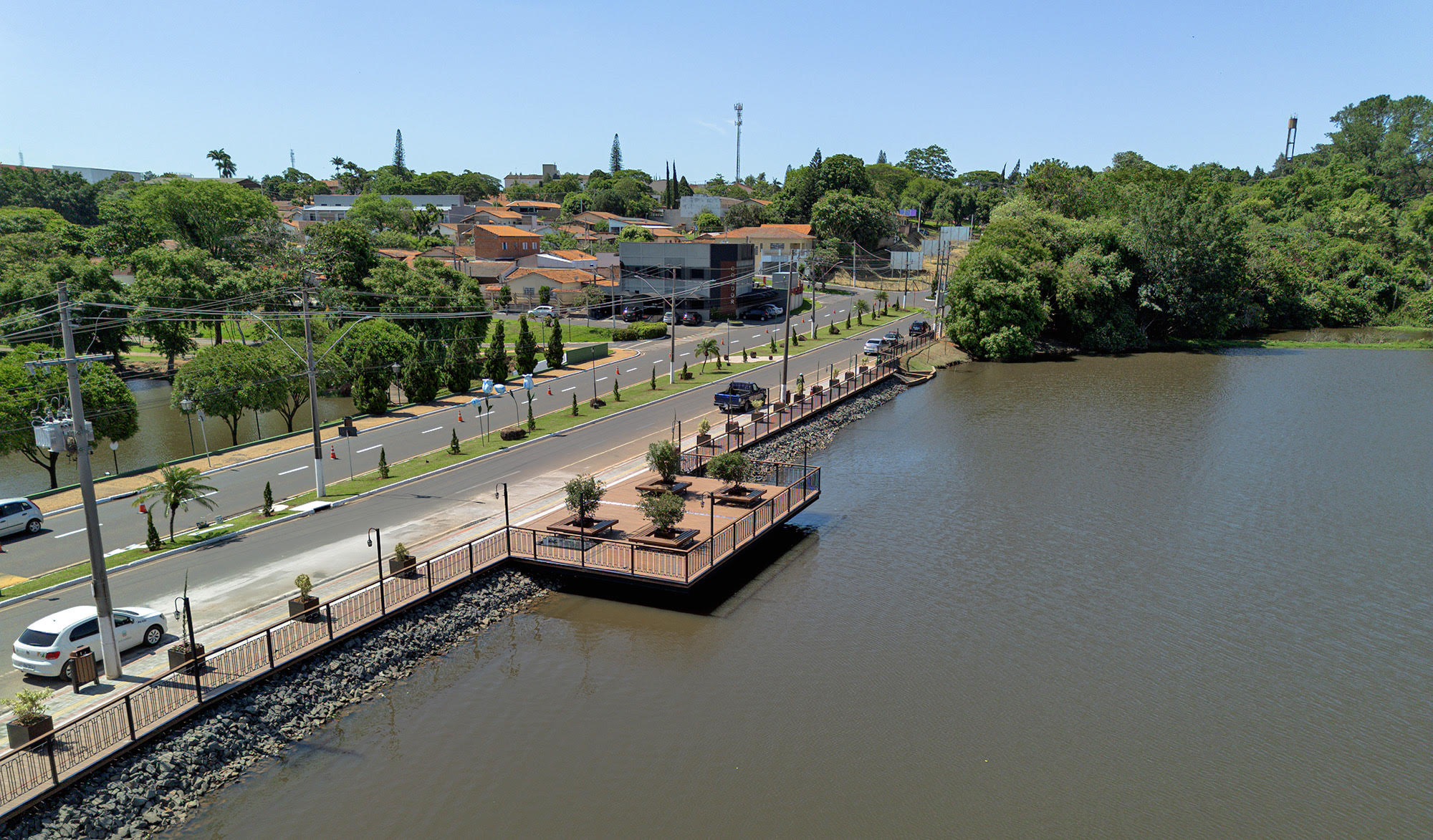 De acordo com a diretora municipal de Obras e Desenvolvimento Urbano e Rural, Yessika Eltink Cahen, o projeto incluiu ainda a instalação de 24 postes em aço galvanizado, equipados com luminárias coloniais em alumínio fundido e pontos de luz instalados no piso. A calçada ao redor do deck foi reformada com piso intertravado e acessibilidade – e o espaço ganhou bancos personalizados, novas lixeiras e paisagismo. O investimento total foi de cerca de R$ 1,5 milhão.