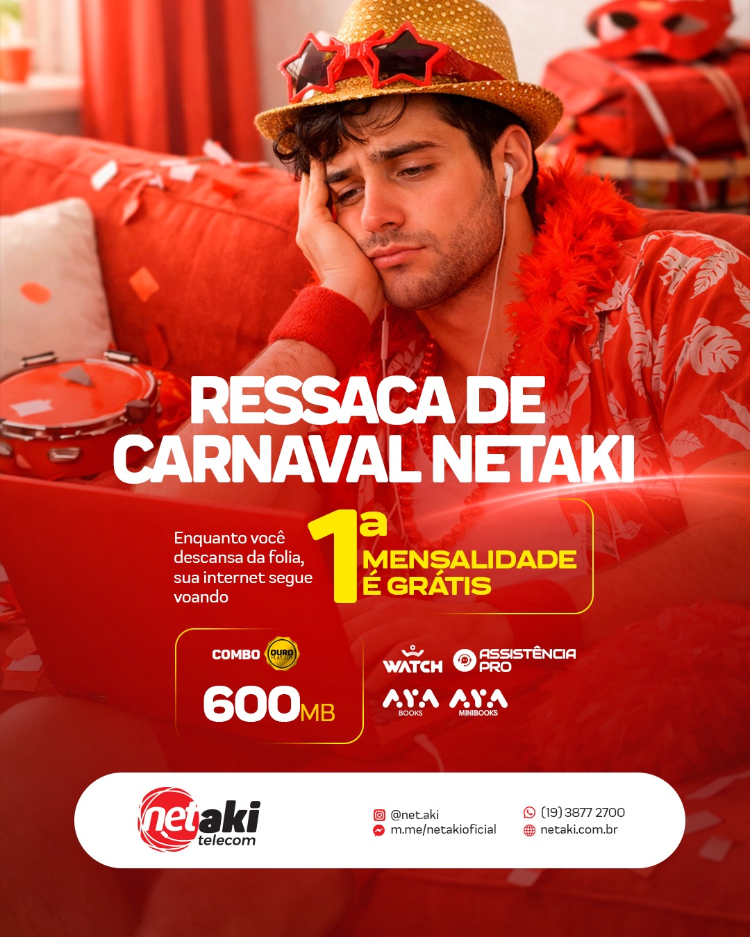 Ressaca de Carnaval Net Aki: Conecte-se com a 1ª mensalidade grátis