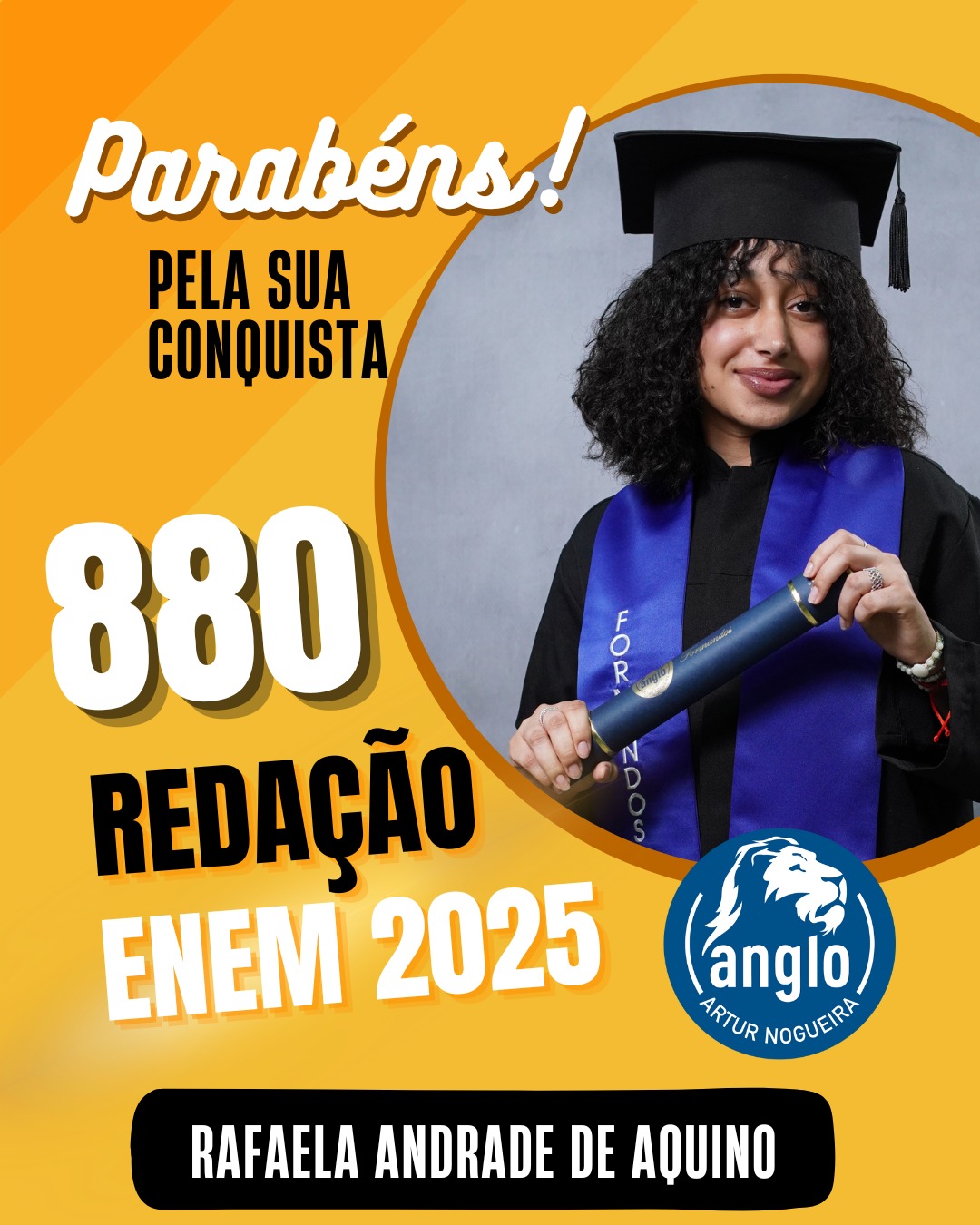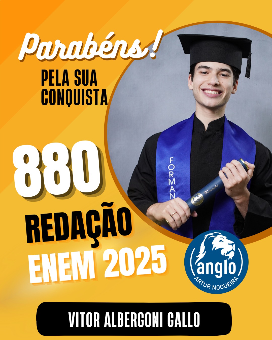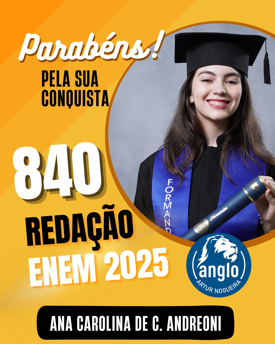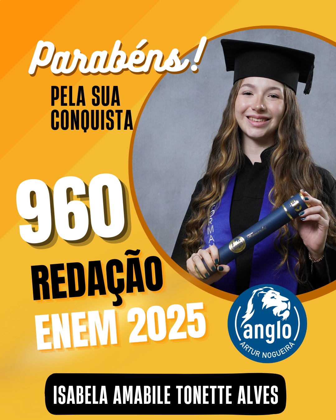 O Colégio Anglo Artur Nogueira parabeniza todos os alunos que conquistaram excelentes notas no ENEM, com destaque especial para aqueles que se sobressaíram na redação. As artes comemorativas publicadas celebram não apenas os resultados, mas todo o percurso de estudo, persistência e amadurecimento vivido durante a trajetória escolar.