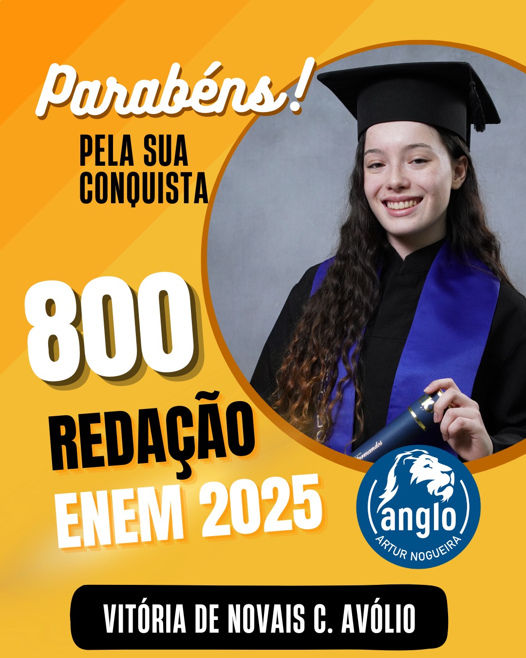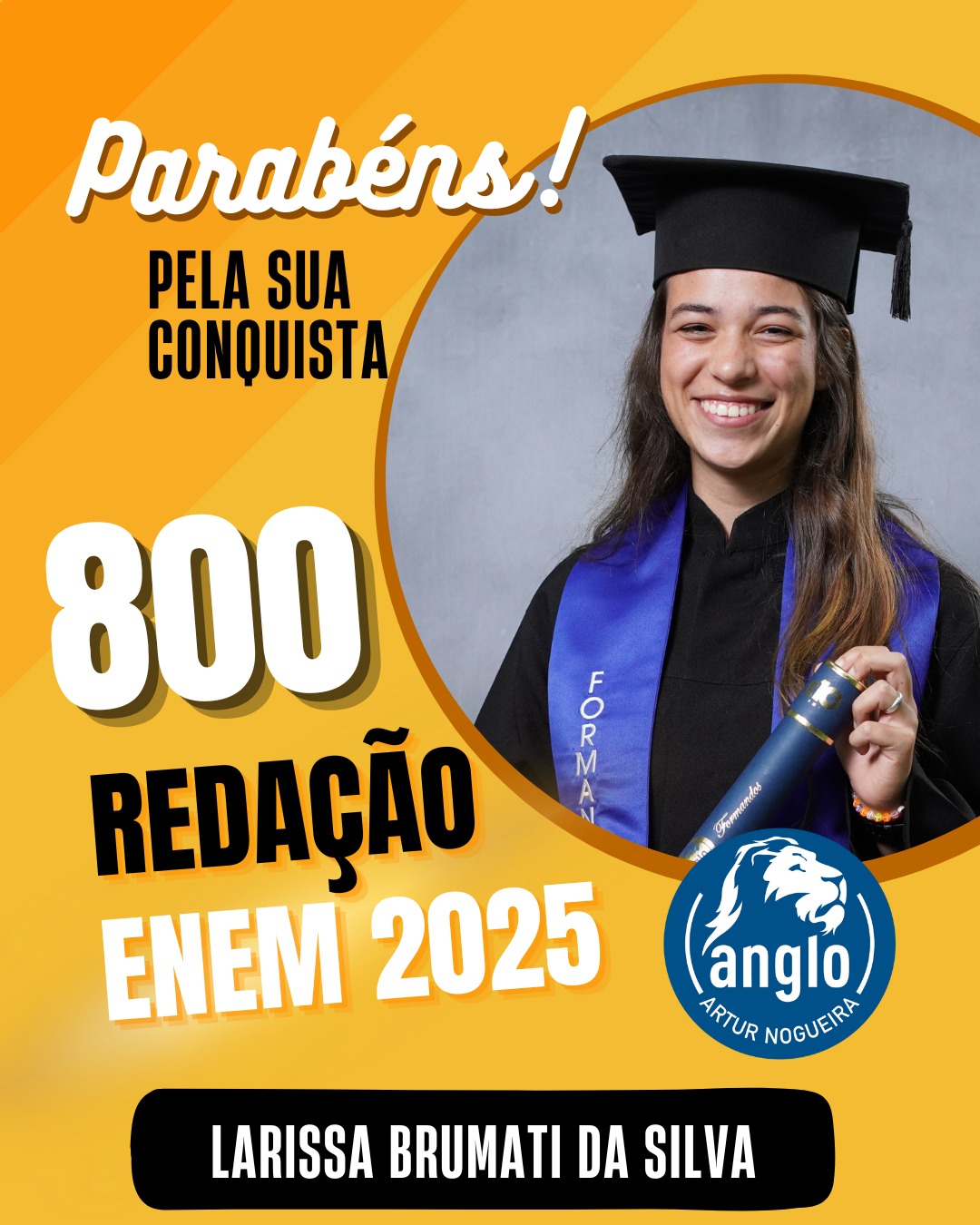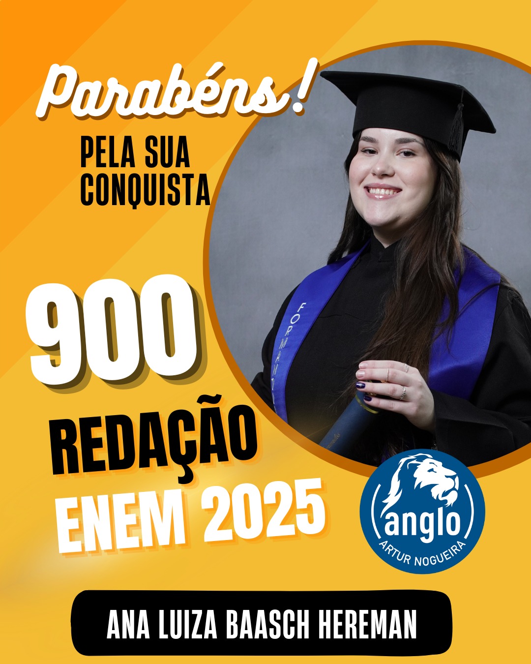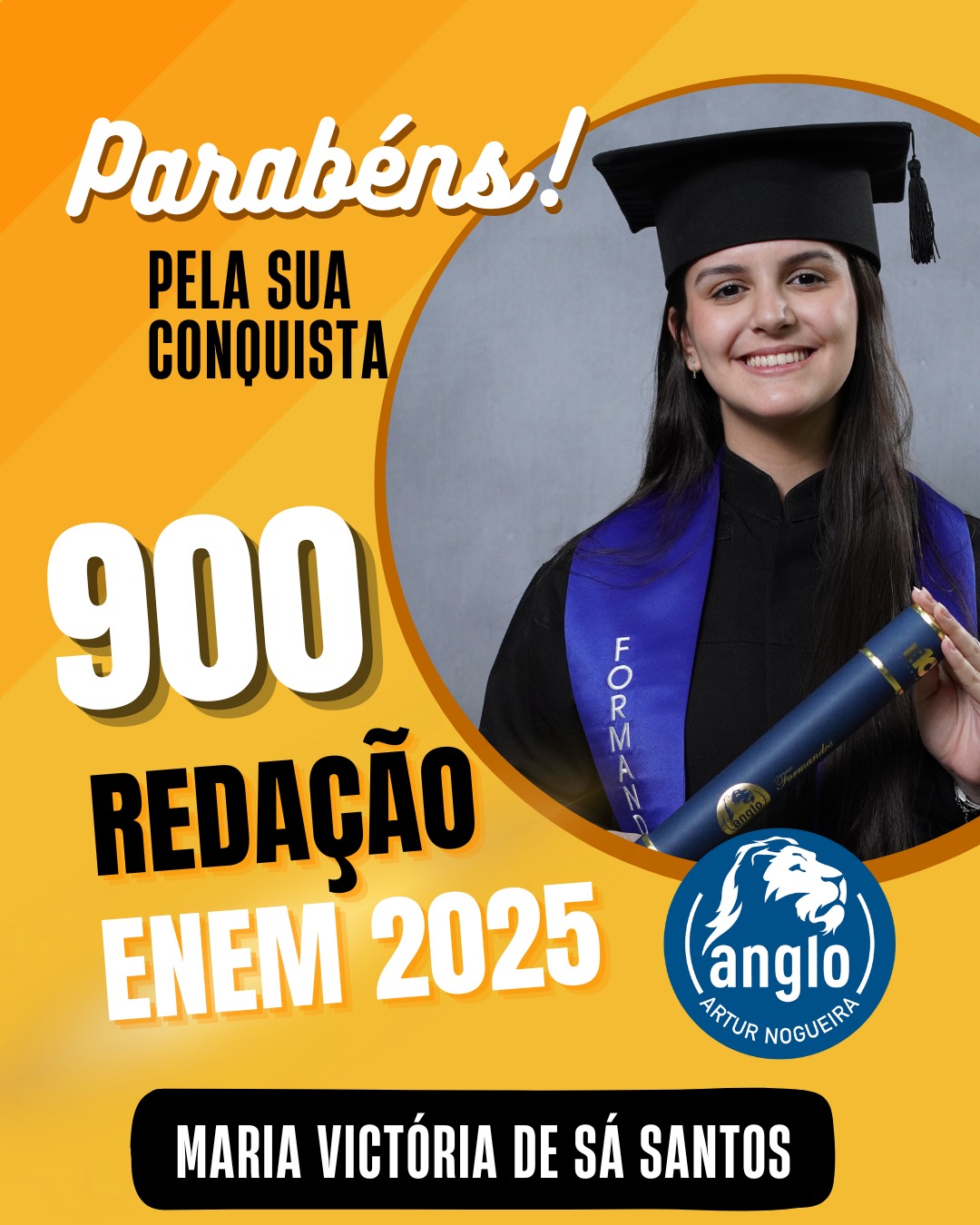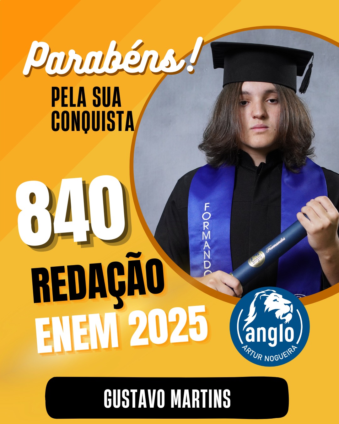 O Colégio Anglo Artur Nogueira parabeniza todos os alunos que conquistaram excelentes notas no ENEM, com destaque especial para aqueles que se sobressaíram na redação. As artes comemorativas publicadas celebram não apenas os resultados, mas todo o percurso de estudo, persistência e amadurecimento vivido durante a trajetória escolar.