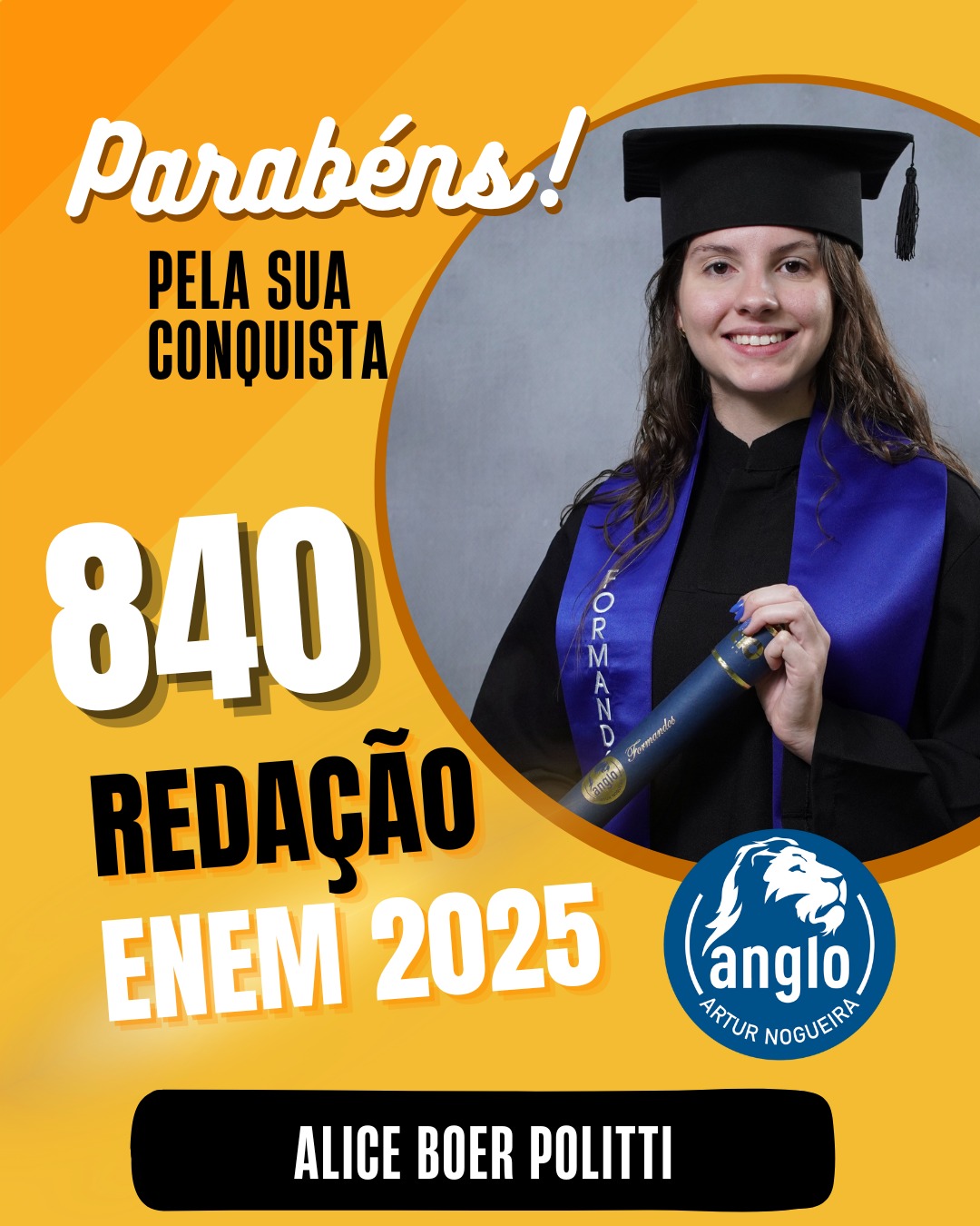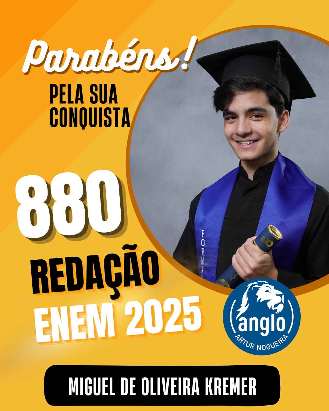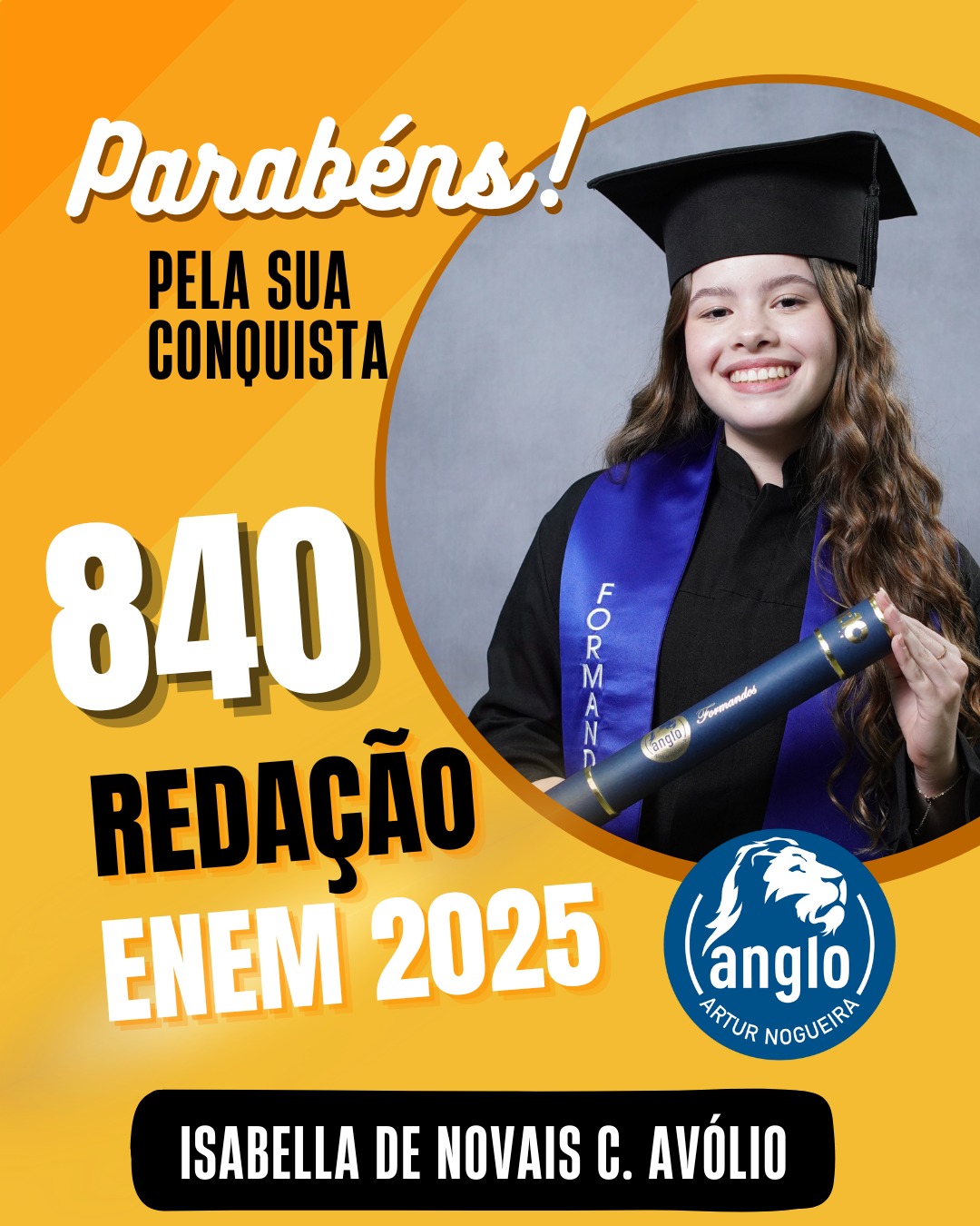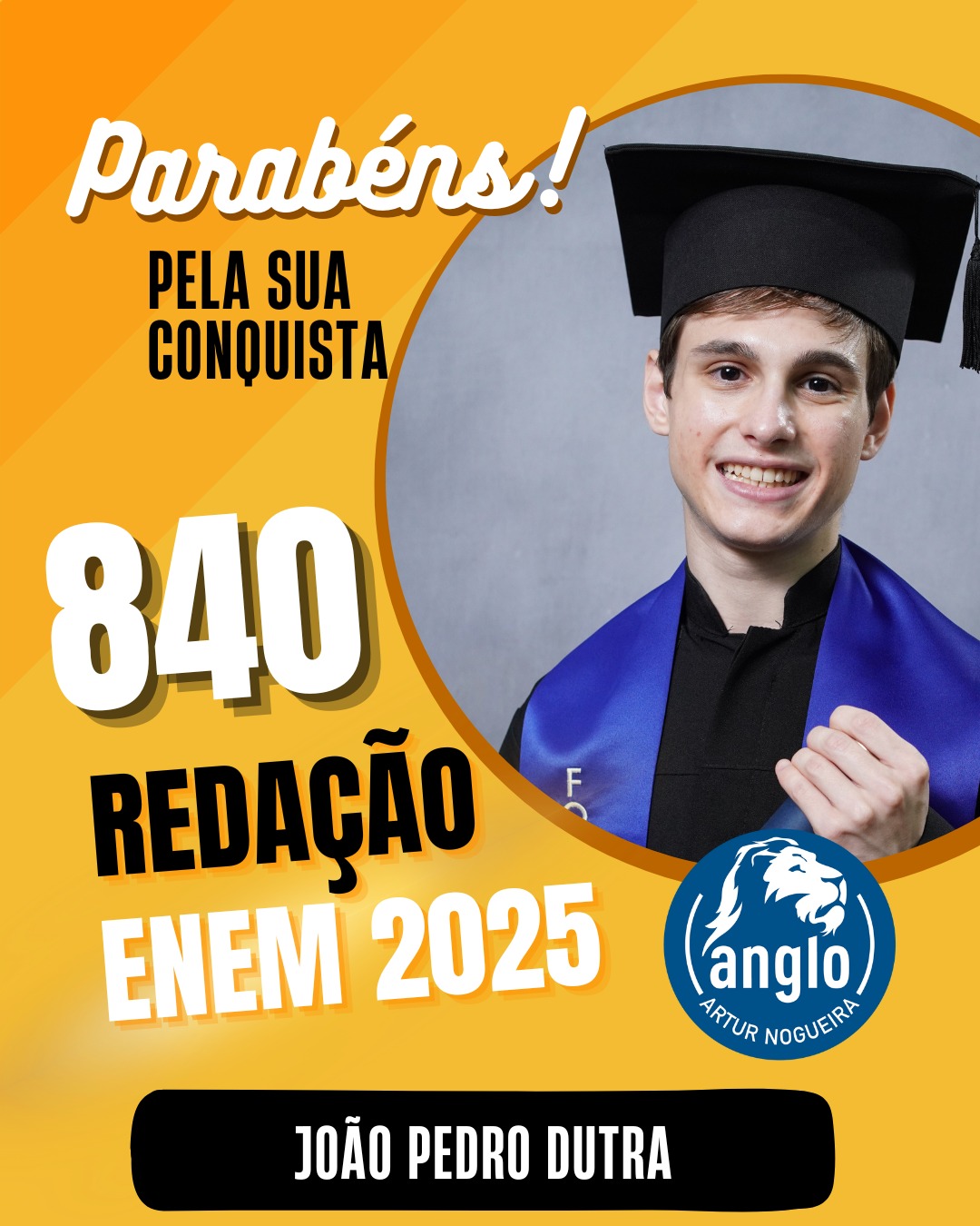 O Colégio Anglo Artur Nogueira parabeniza todos os alunos que conquistaram excelentes notas no ENEM, com destaque especial para aqueles que se sobressaíram na redação. As artes comemorativas publicadas celebram não apenas os resultados, mas todo o percurso de estudo, persistência e amadurecimento vivido durante a trajetória escolar.