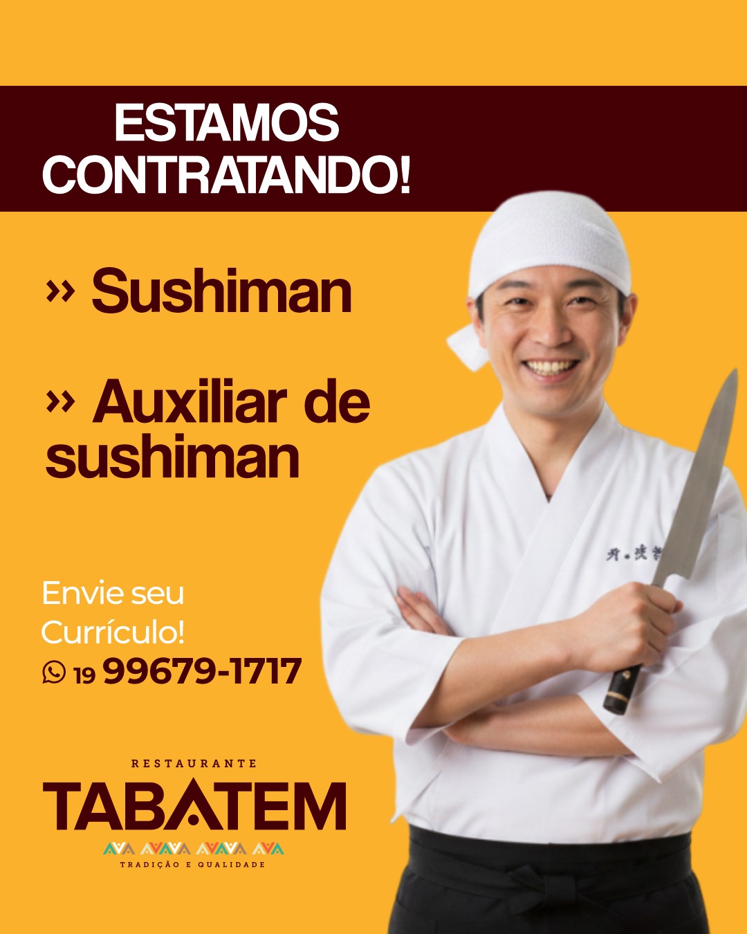 Tabatem abre vagas para Sushiman e Auxiliar de Sushiman